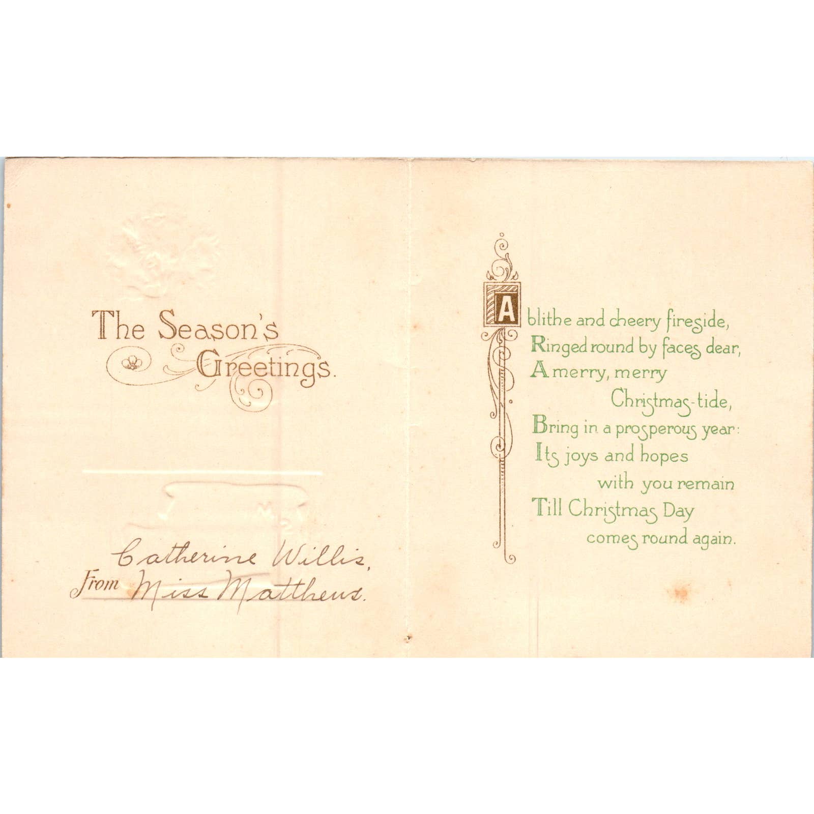 Raphael Tuck Folding Season's Greetings Holiday Card Original Postcard TK1-P19