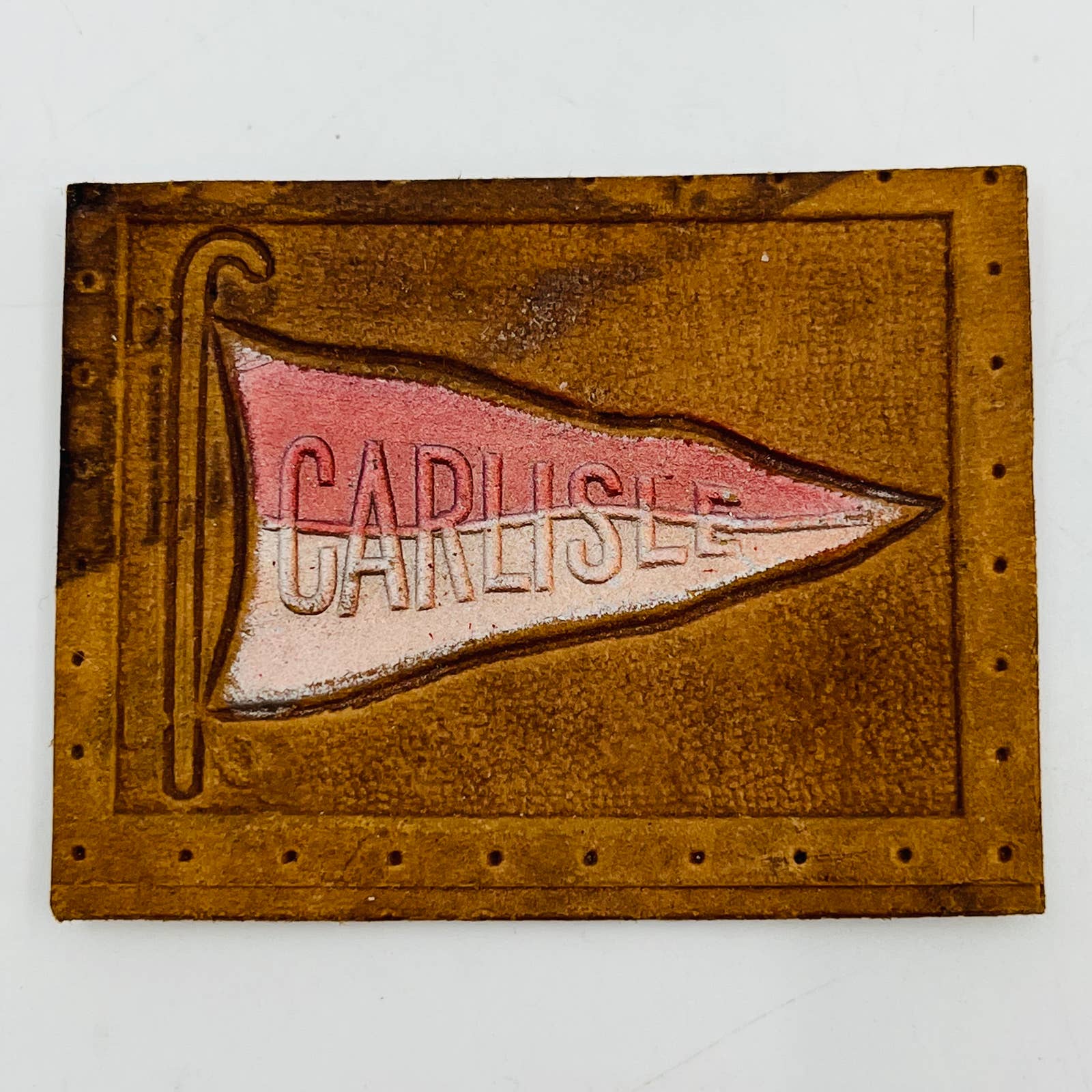 RARE 1908 Carlisle Indian School PA Leather Tobacco Pennant Card 2.5 x 2” EA2