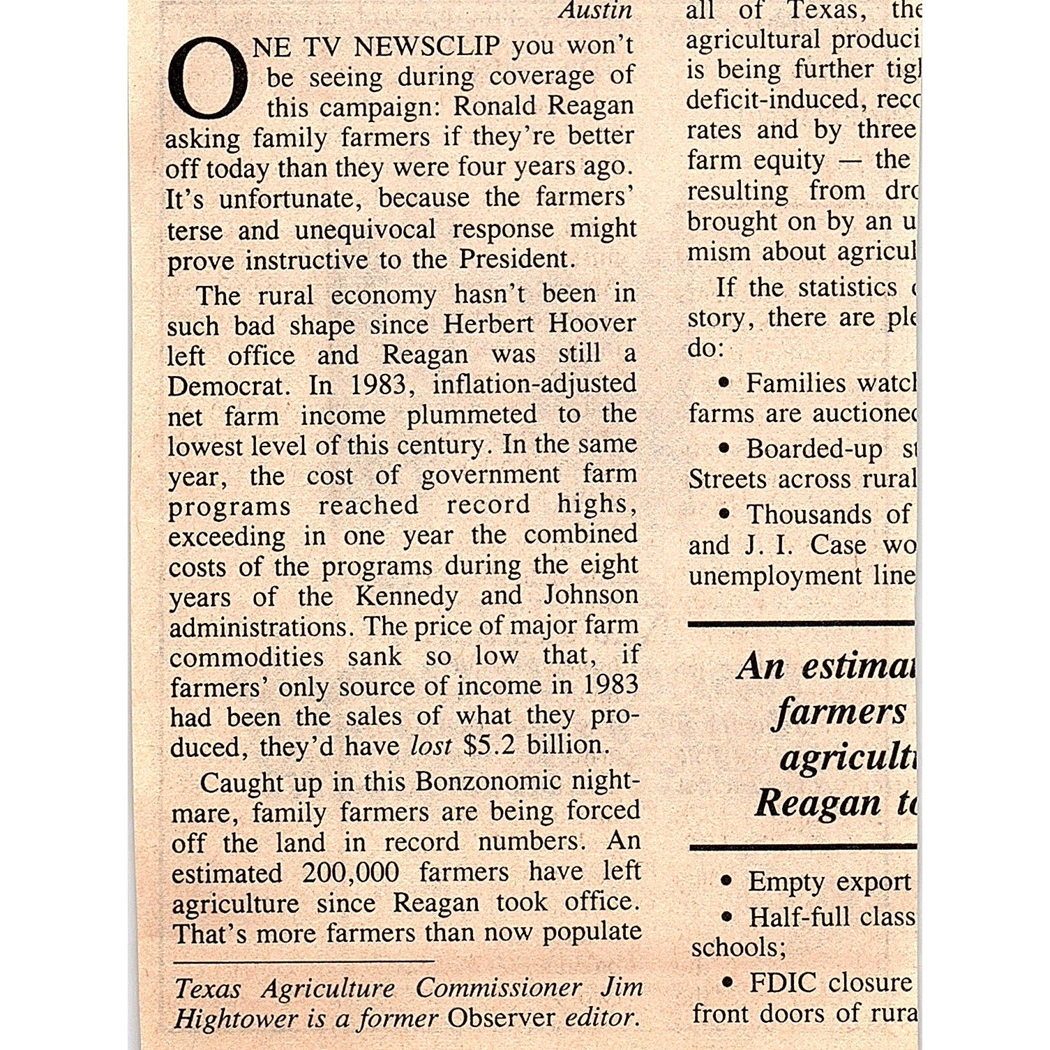 Measures approx 3.5x5. Original piece from The Texas Observer Magazine 1984. There be some light staining, tears, and/or other signs of wear and tear. See pics for condition.