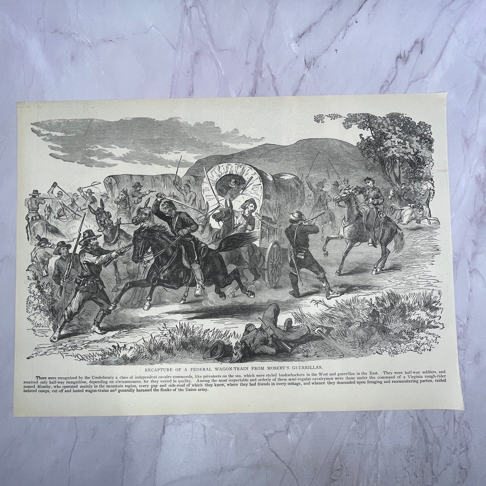 Recapture of Federal Wagon-Train From Moseby's Guerillas 1890s Engraving V14-6