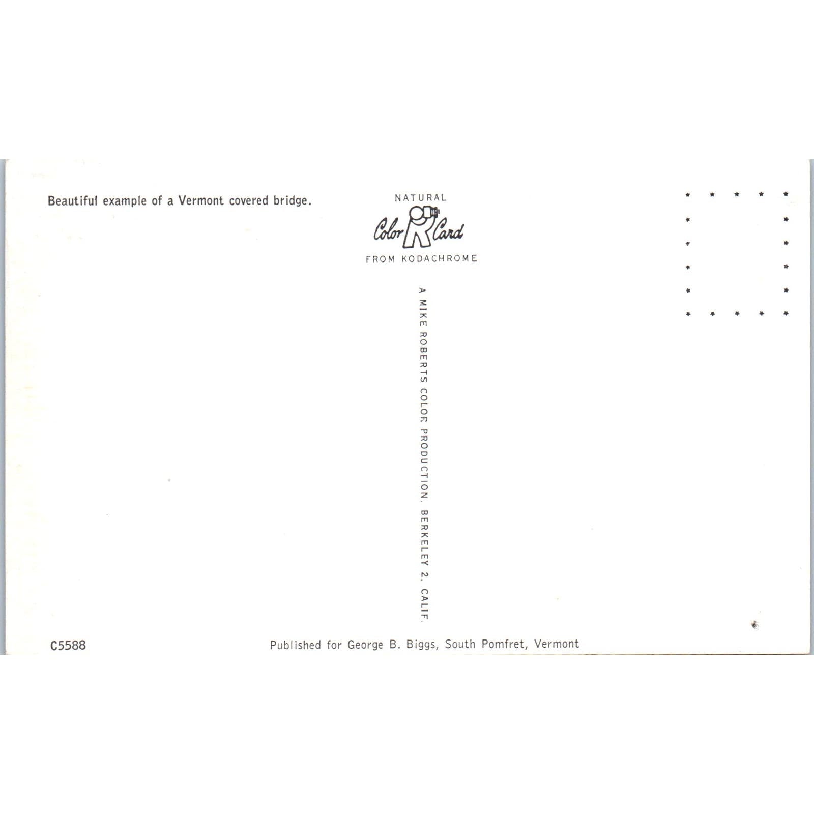 Red Covered Bridge Over River in Vermont Vintage Covered Bridge Postcard PC12