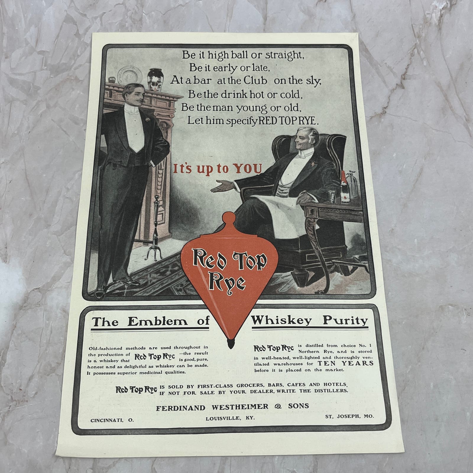 Red Top Rye Whiskey Ferdinand Westheimer & Sons c1910 Magazine Ad FL6-9