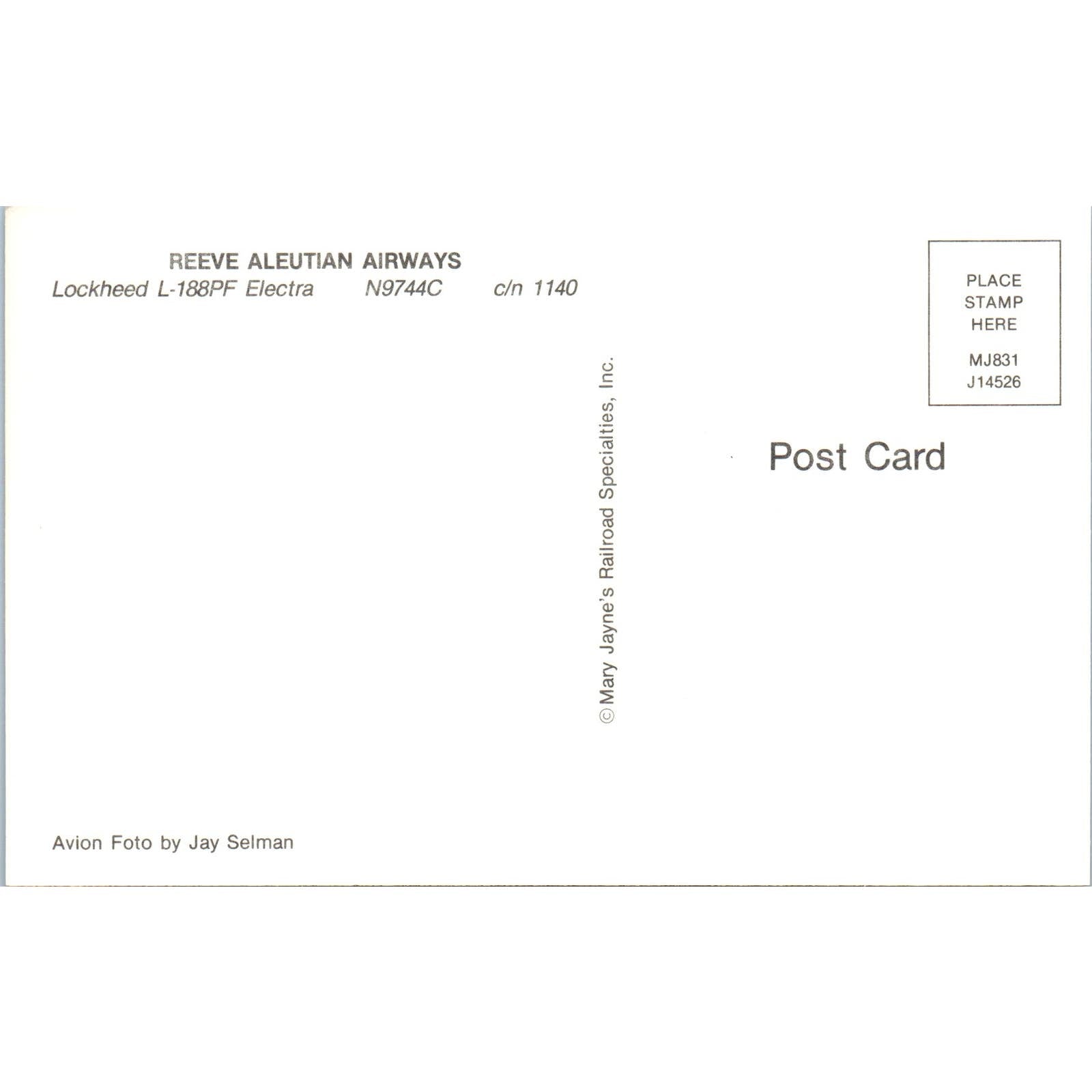 Reeve Aleutian Airways Lockheed L-188PF Electra Vintage Postcard PC2