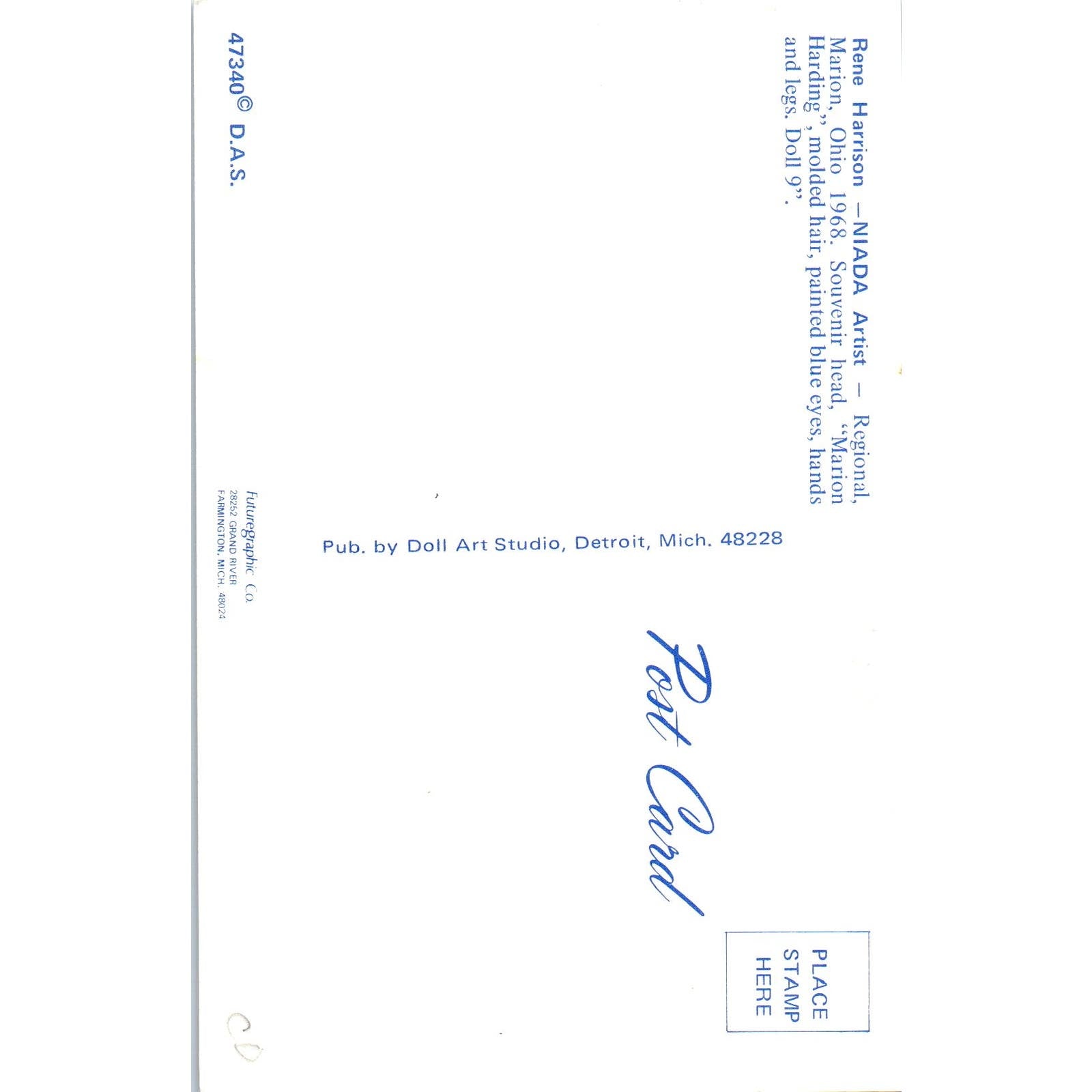 Rene Harrison NIADA Artist - Marion Harding Doll Original Postcard PB9