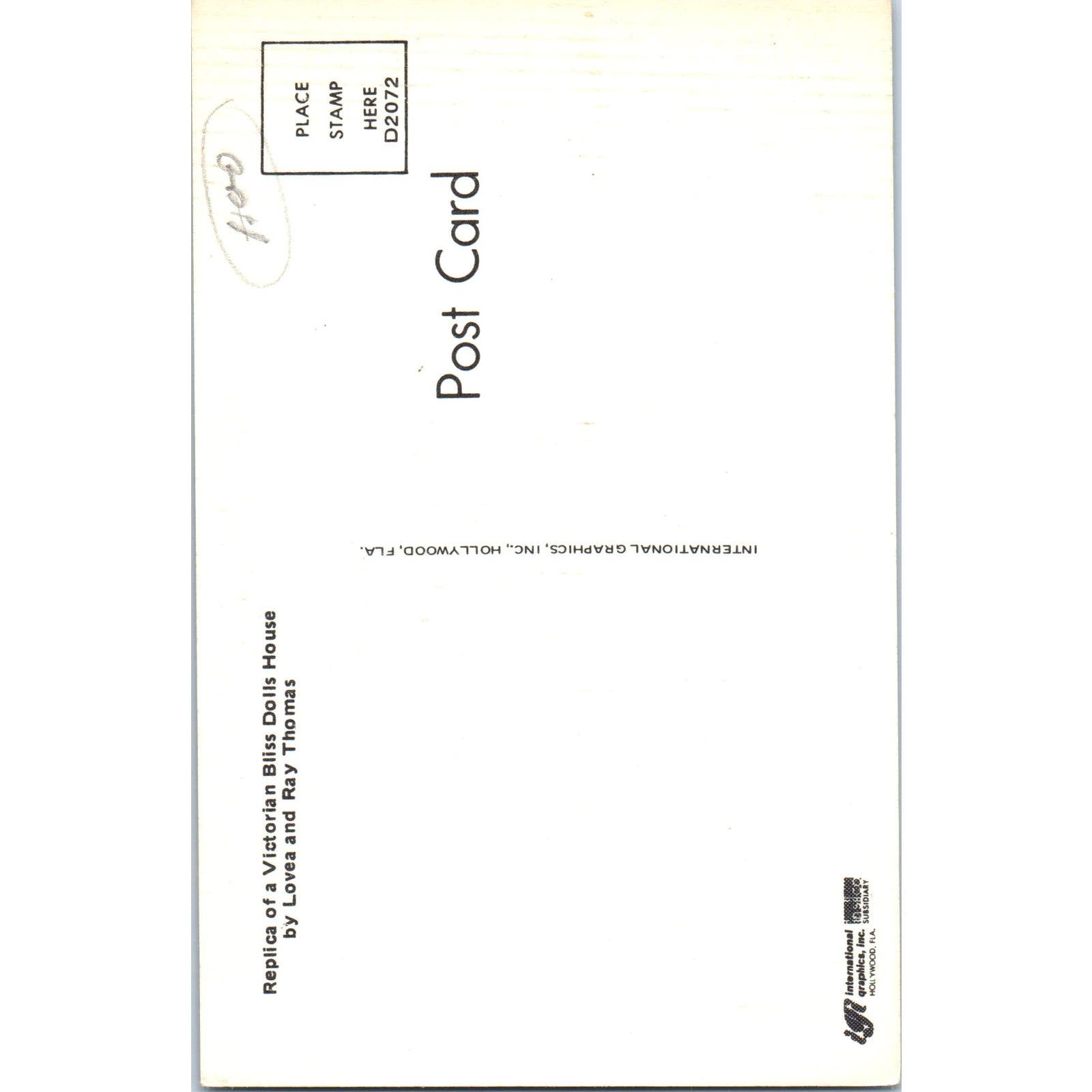 Replica of Victorian Bliss Doll House Loves & Ray Thomas Original Postcard PB8