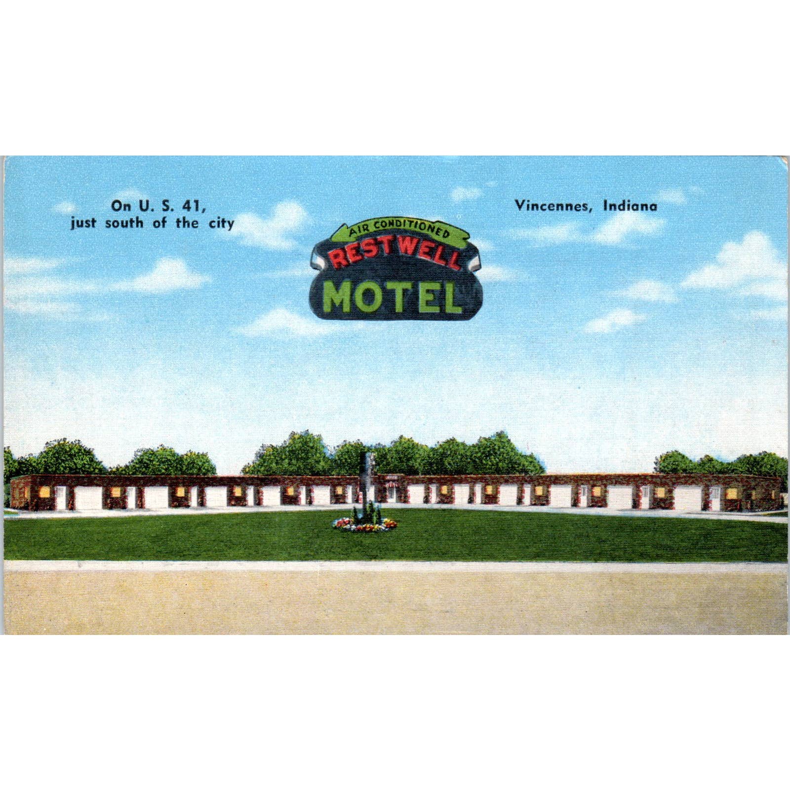 Restwell Motel Vincennes Indiana - Original Postcard TJ9-P1