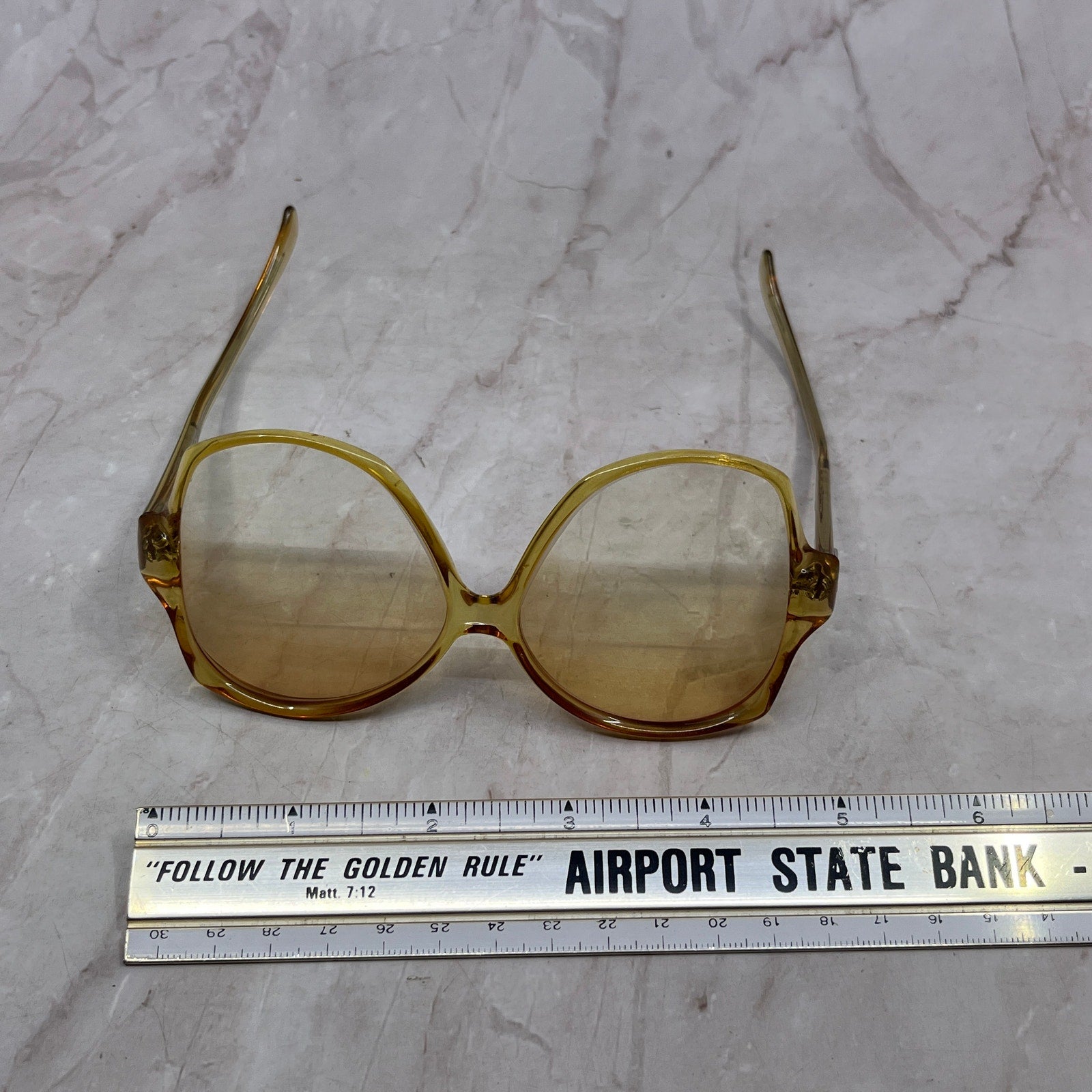 FRAMES ONLY, NO LENSES. Please see pictures for measurements. These have prescription lenses, and you will need to replace them in order to use the glasses, these are being sold as FRAMES ONLY. They have various wear and tear from use, and could use a good cleaning - reflected in the price. See pics for condition.