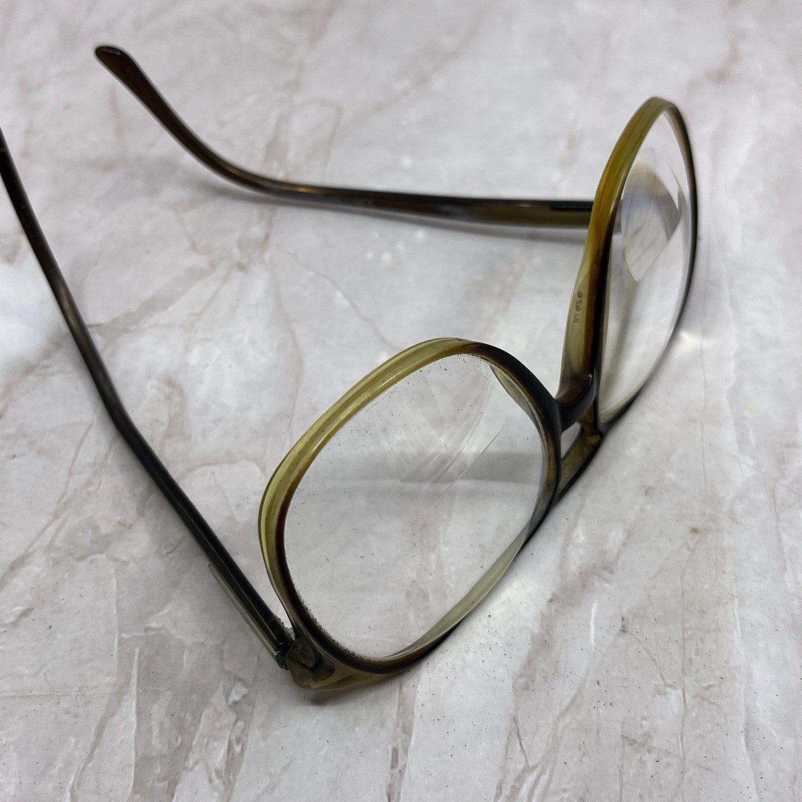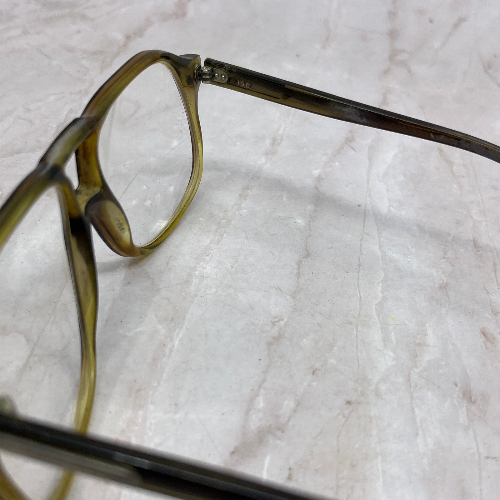 FRAMES ONLY, NO LENSES. Please see pictures for measurements. These have prescription lenses, and you will need to replace them in order to use the glasses, these are being sold as FRAMES ONLY. They have various wear and tear from use, and could use a good cleaning - reflected in the price. See pics for condition.