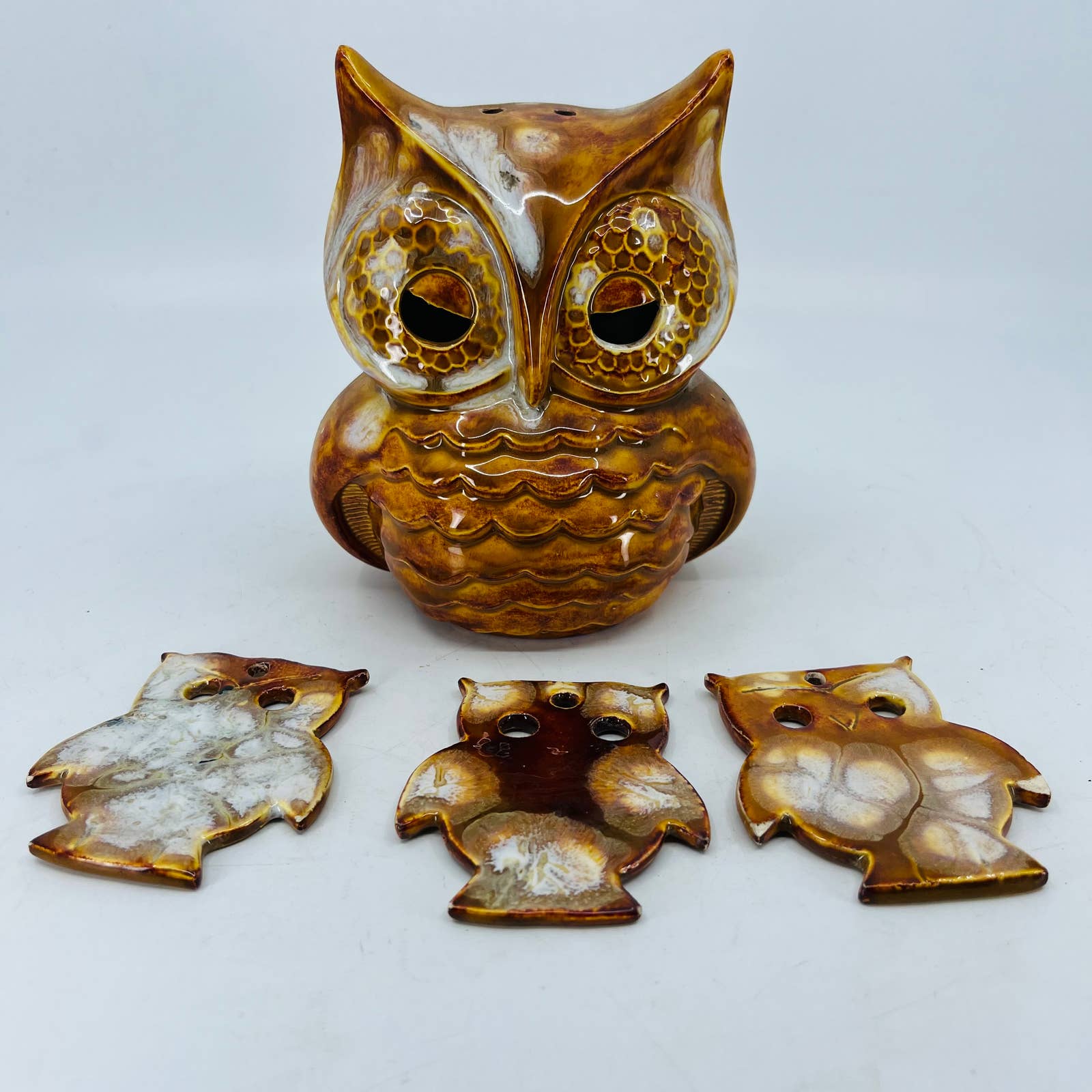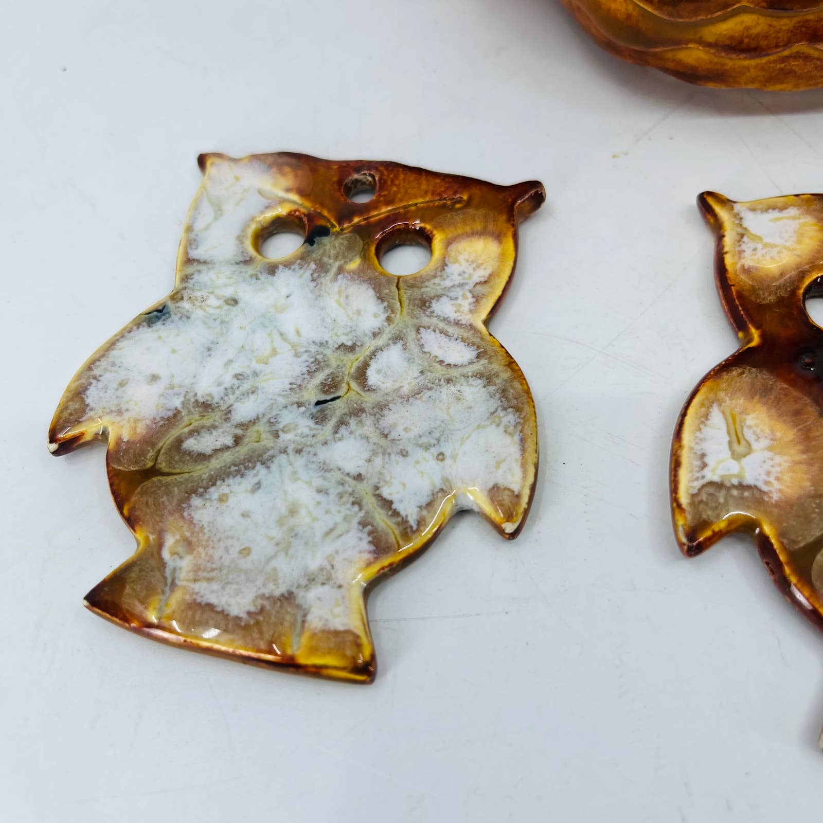 Retro Hand Painted Ceramic Owl Wind Chime w/ 3 Owlets 5.5” TC7