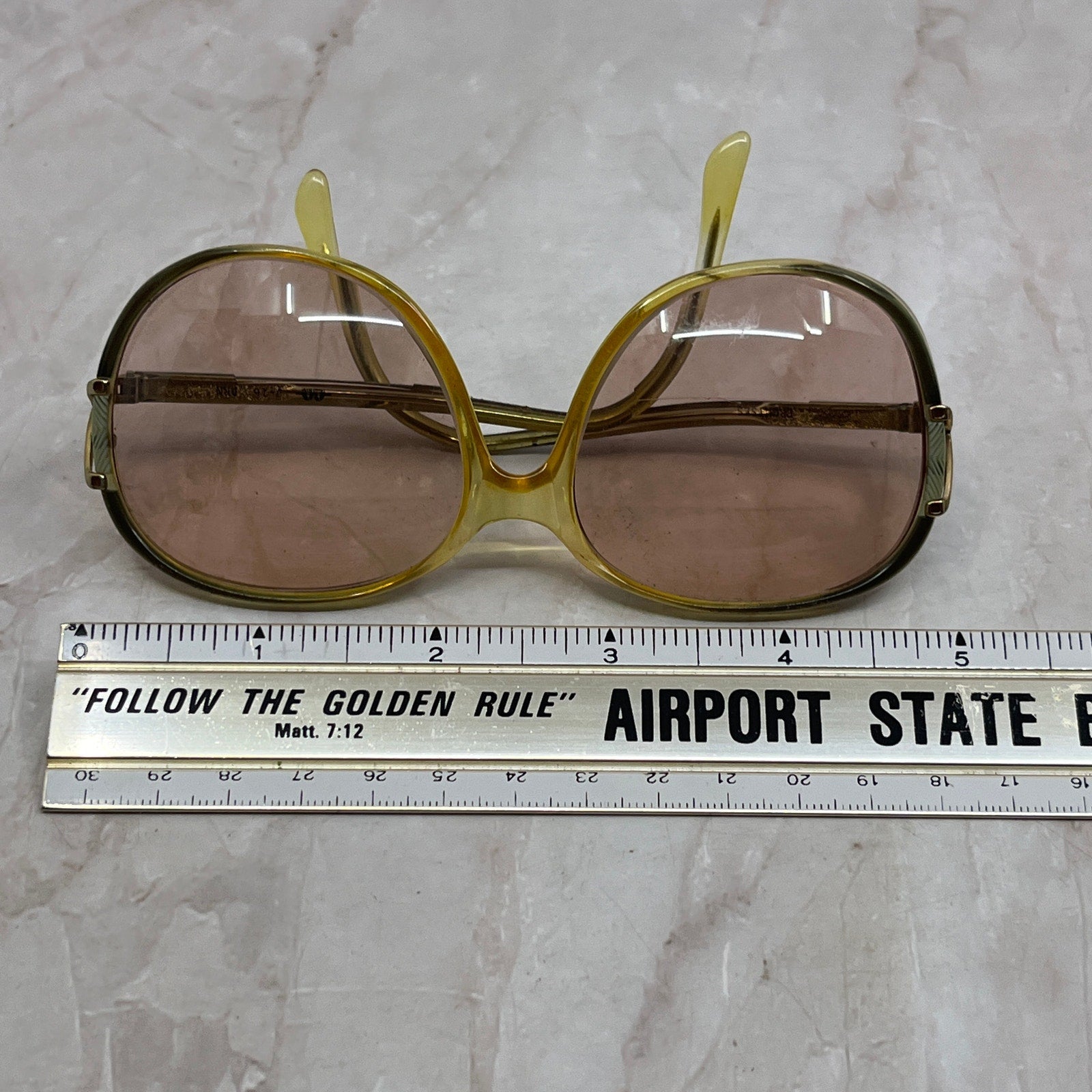 FRAMES ONLY, NO LENSES. Please see pictures for measurements. These have prescription lenses, and you will need to replace them in order to use the glasses, these are being sold as FRAMES ONLY. They have various wear and tear from use, and could use a good cleaning - reflected in the price. See pics for condition.