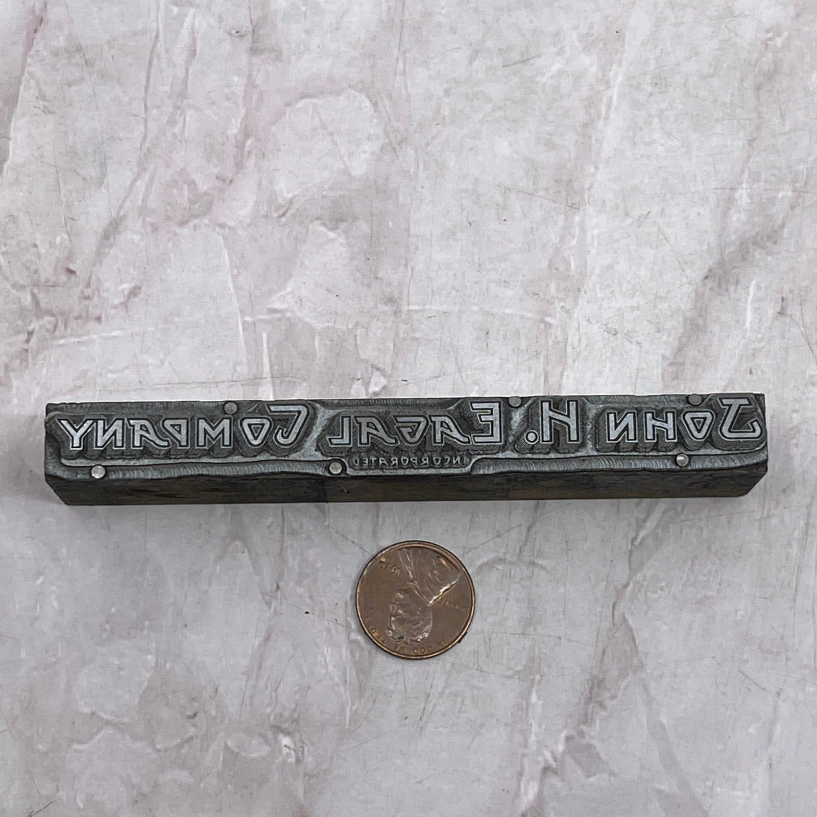 Retro John H. Eagal Company Inc Vintage Letterpress Printers Block Plate SF5