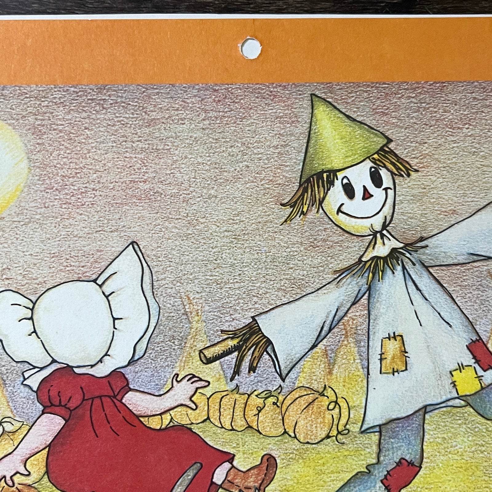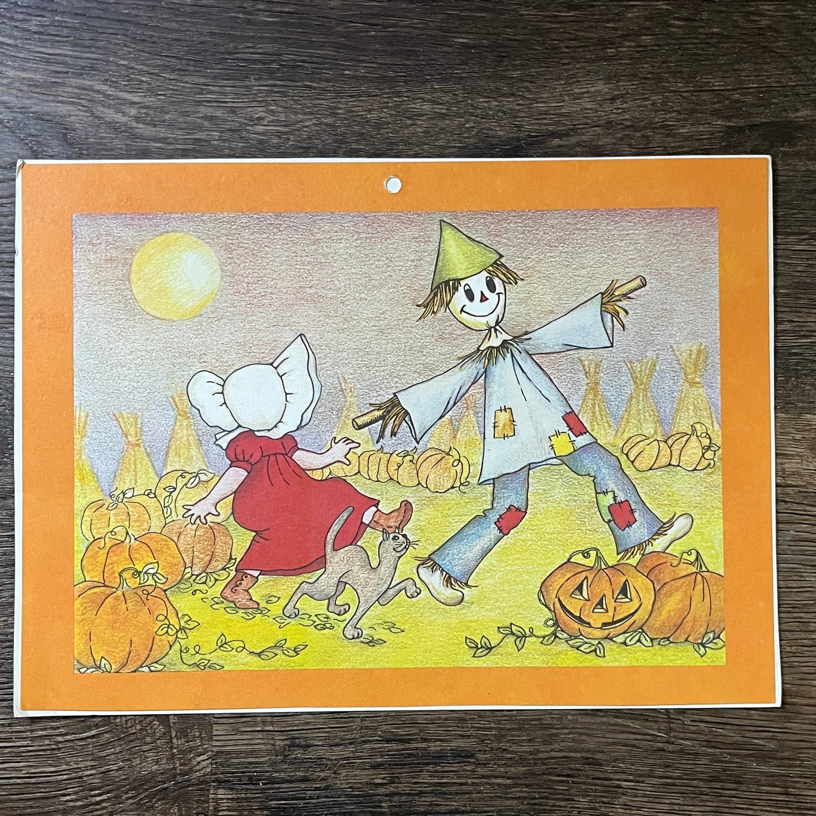 Retro Kitsch 1970s Halloween Scarecrow Jack-O-Lantern 9x12 Vintage Art Print V3