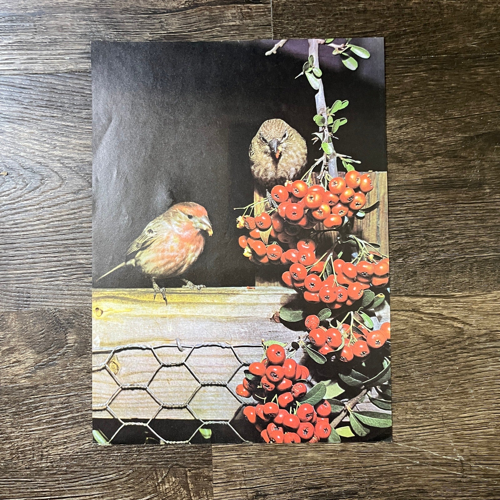 Retro Kitsch 1970s Pine Grosbeak Birds Photo Print 9x12 Vintage Art Print V3