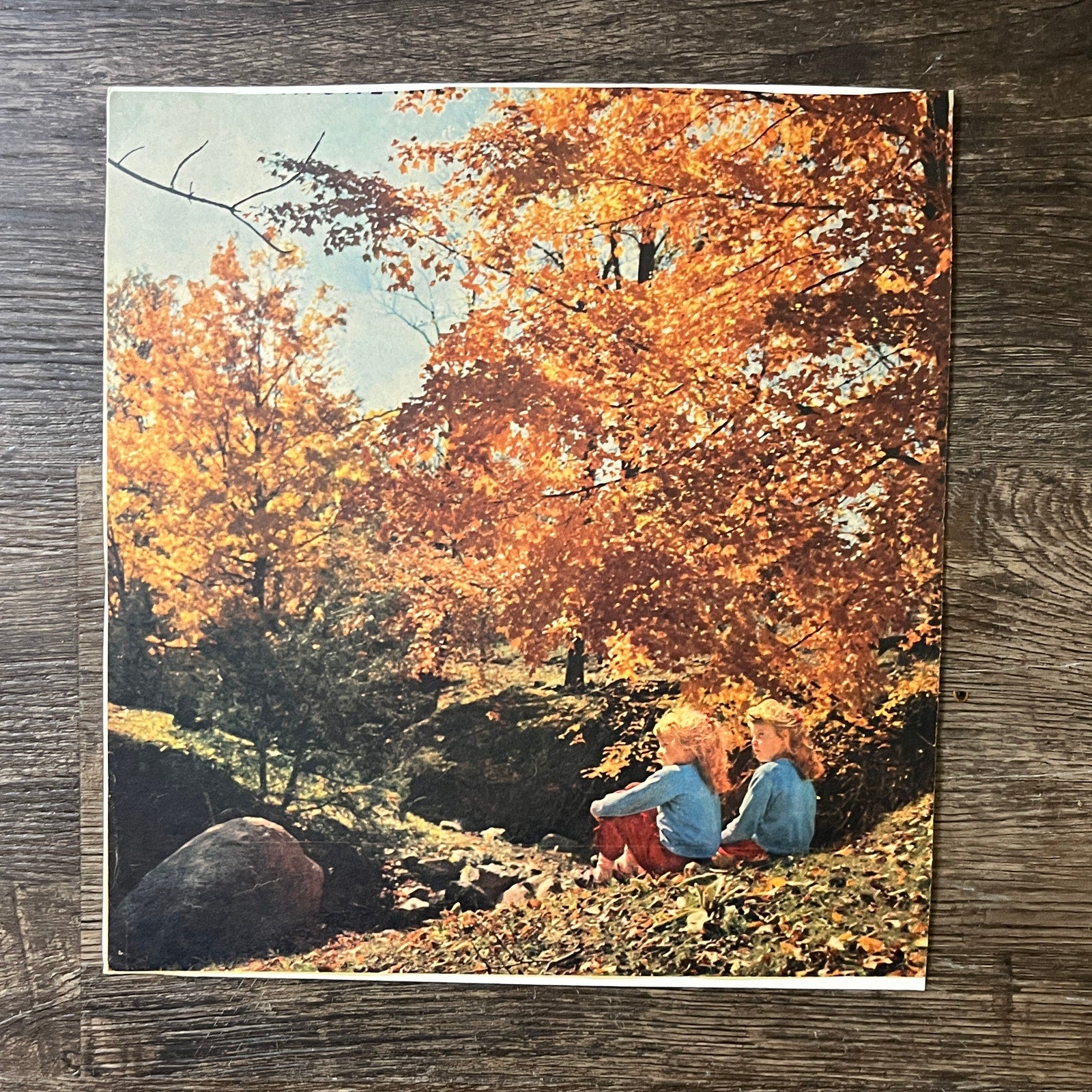 Retro Kitsch Autumn Fall Scene Children Beneath Tree Vintage Art Print 9.5x10 V5