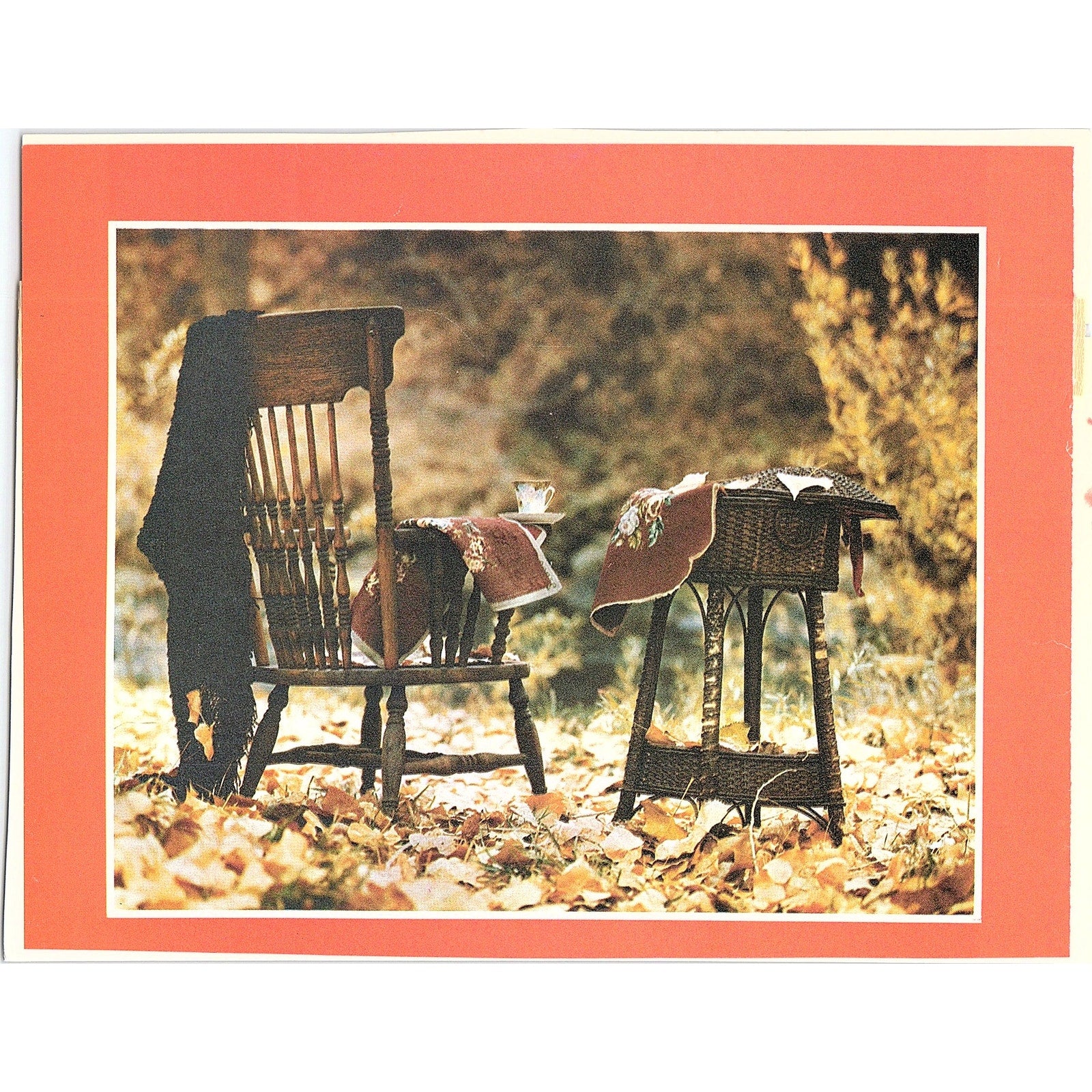 Retro Kitsch c1970 Autumn Fall Scene Chair Tea Vintage Art Print 6x8 V12