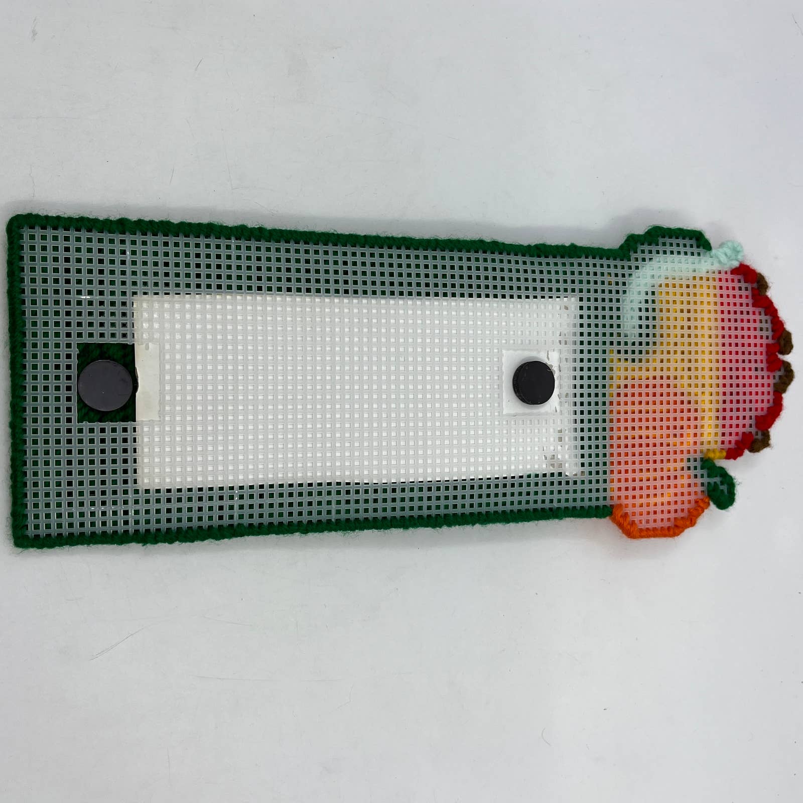 Retro Kitsch Cross Stitch Canvas Grocery List Holder Magnet Autumn Pumpkin TC3