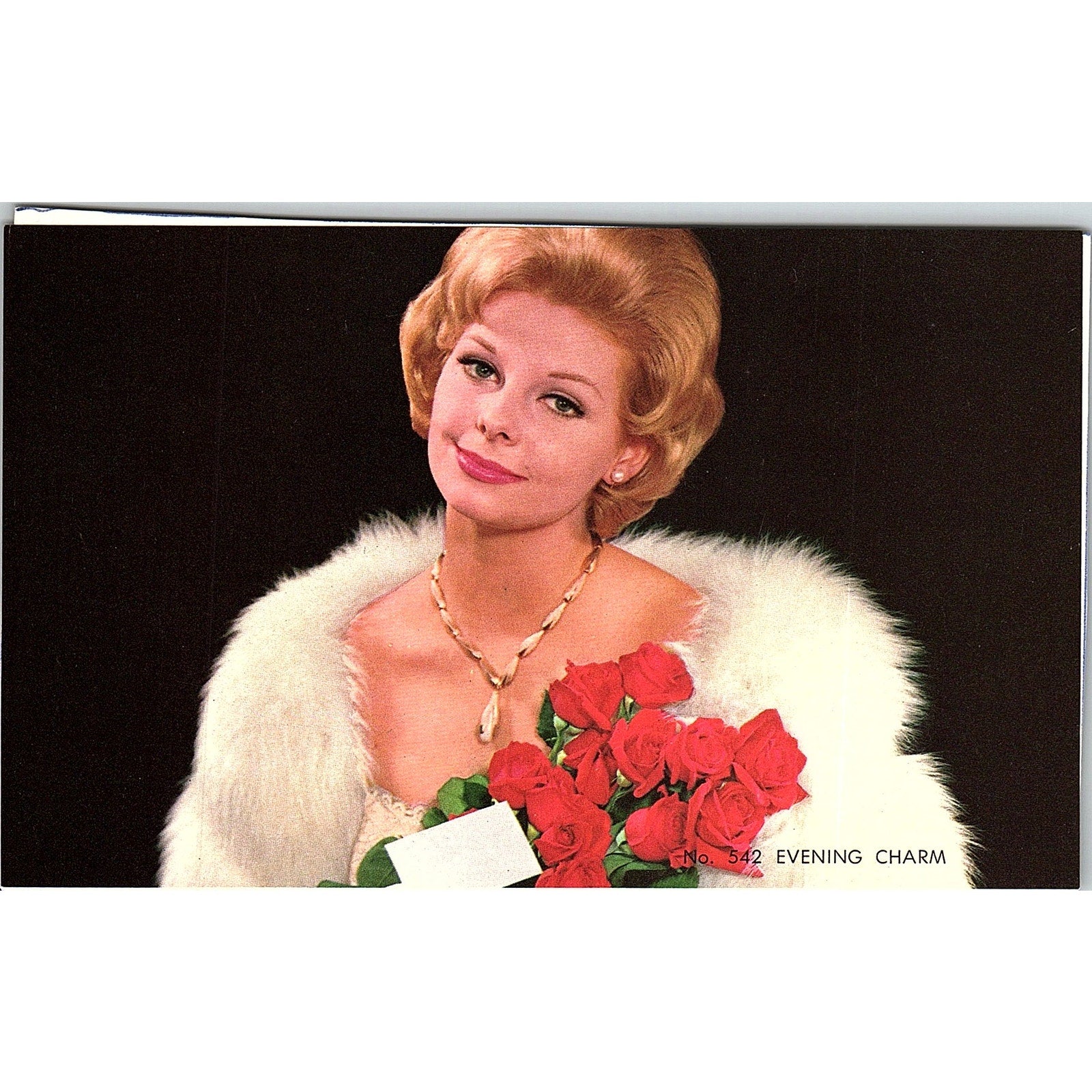Retro Kitsch Lady in White Fur With Bouquet of Roses Vintage Art Print 3x6 V12