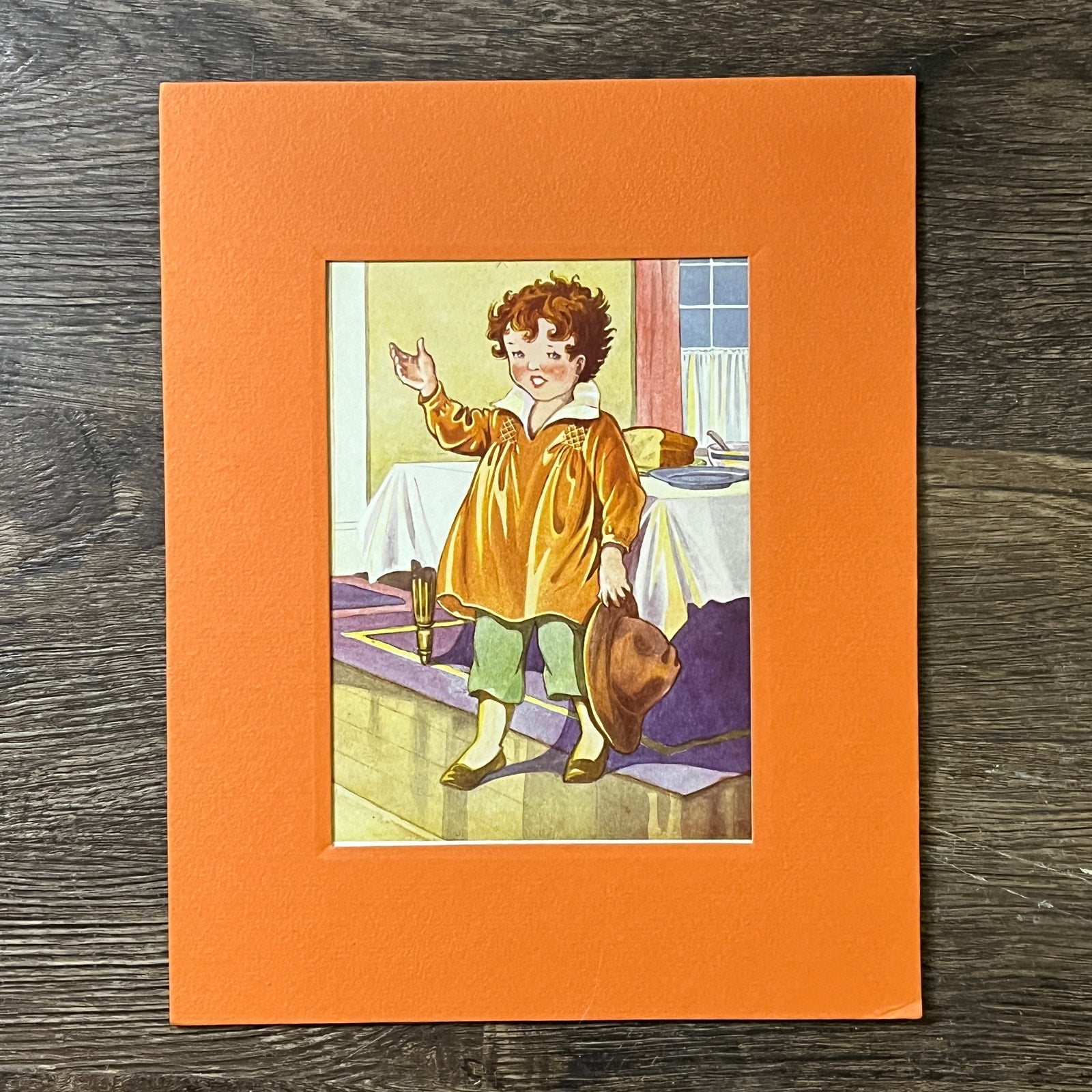 Retro Kitsch Little Girl in Orange Blouse With Hat Matted Art Print 8x10 V4