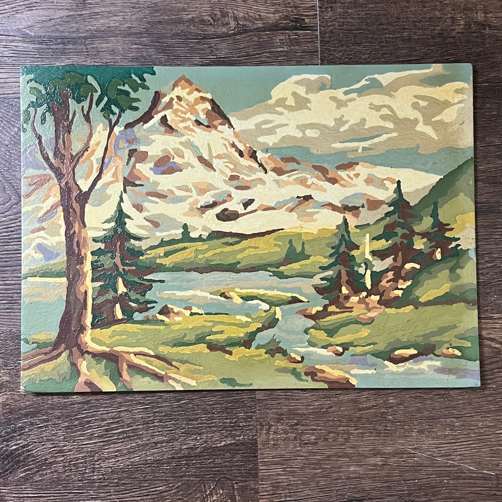 Retro Kitsch Painting Paint-By Numbers Mountain River Scene 10x14 Art Print V2