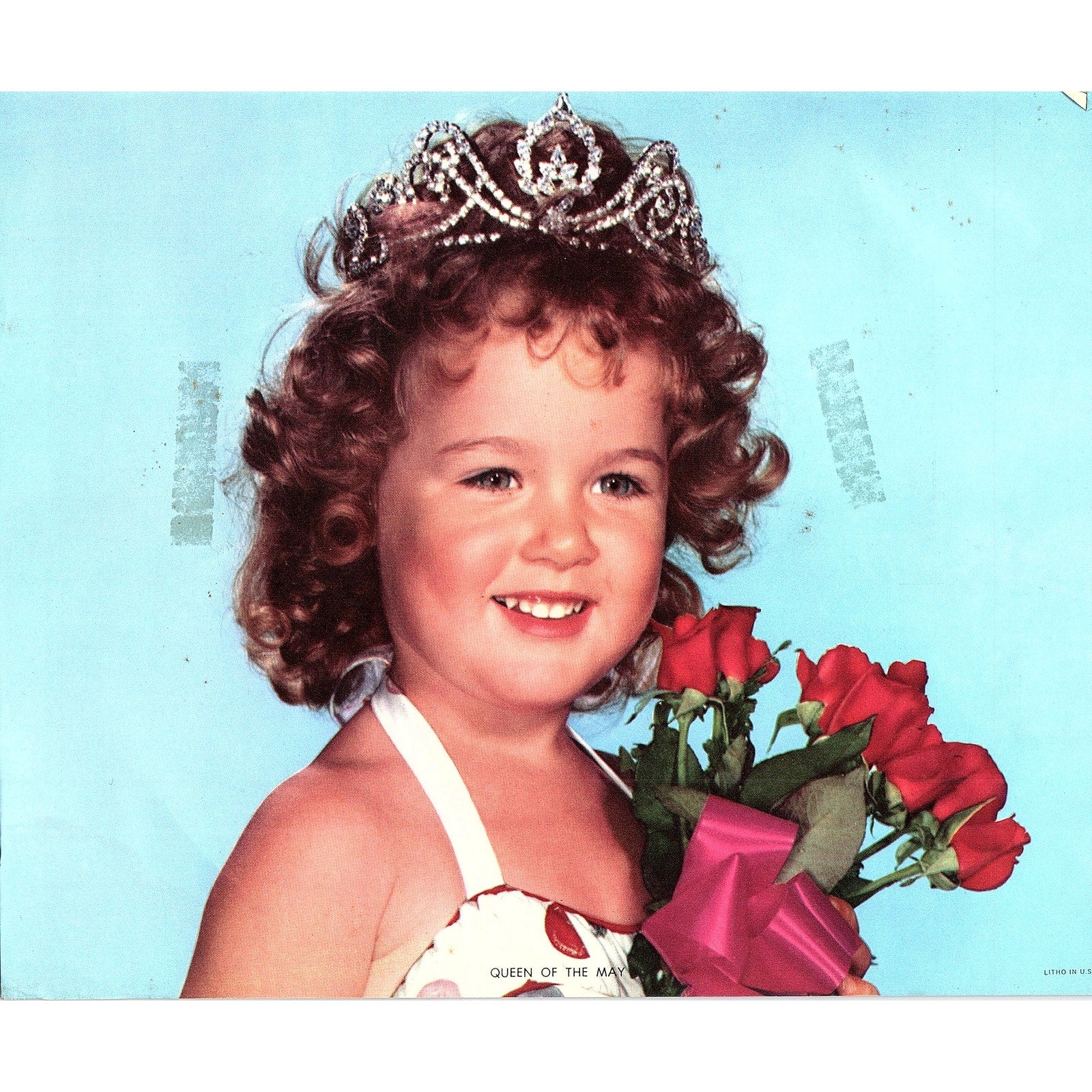 Retro Kitsch Queen of May Curly Hair Girl With Tiara Vintage Art Print 8x10 V5