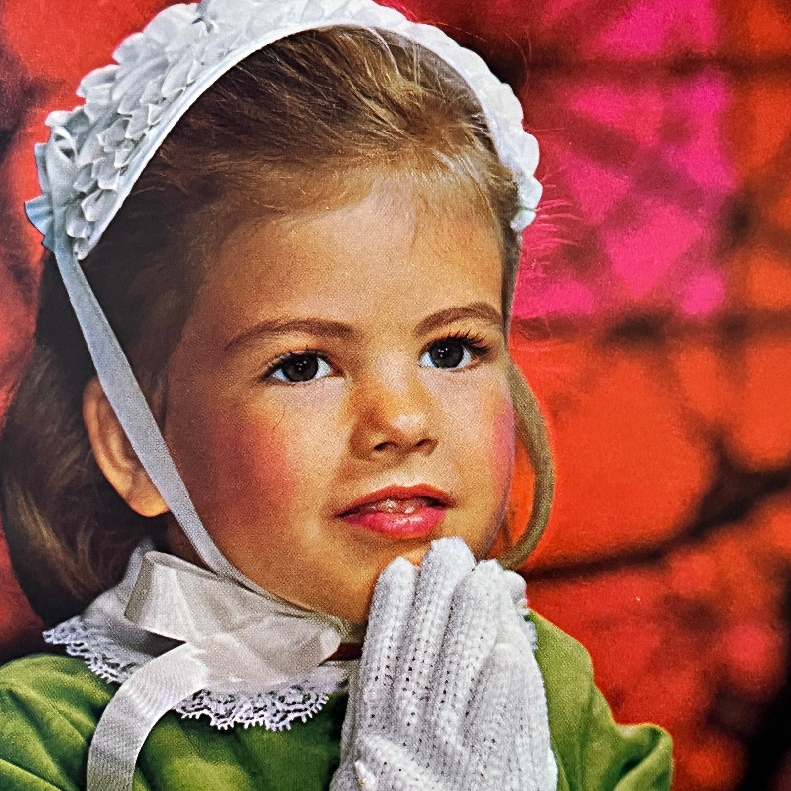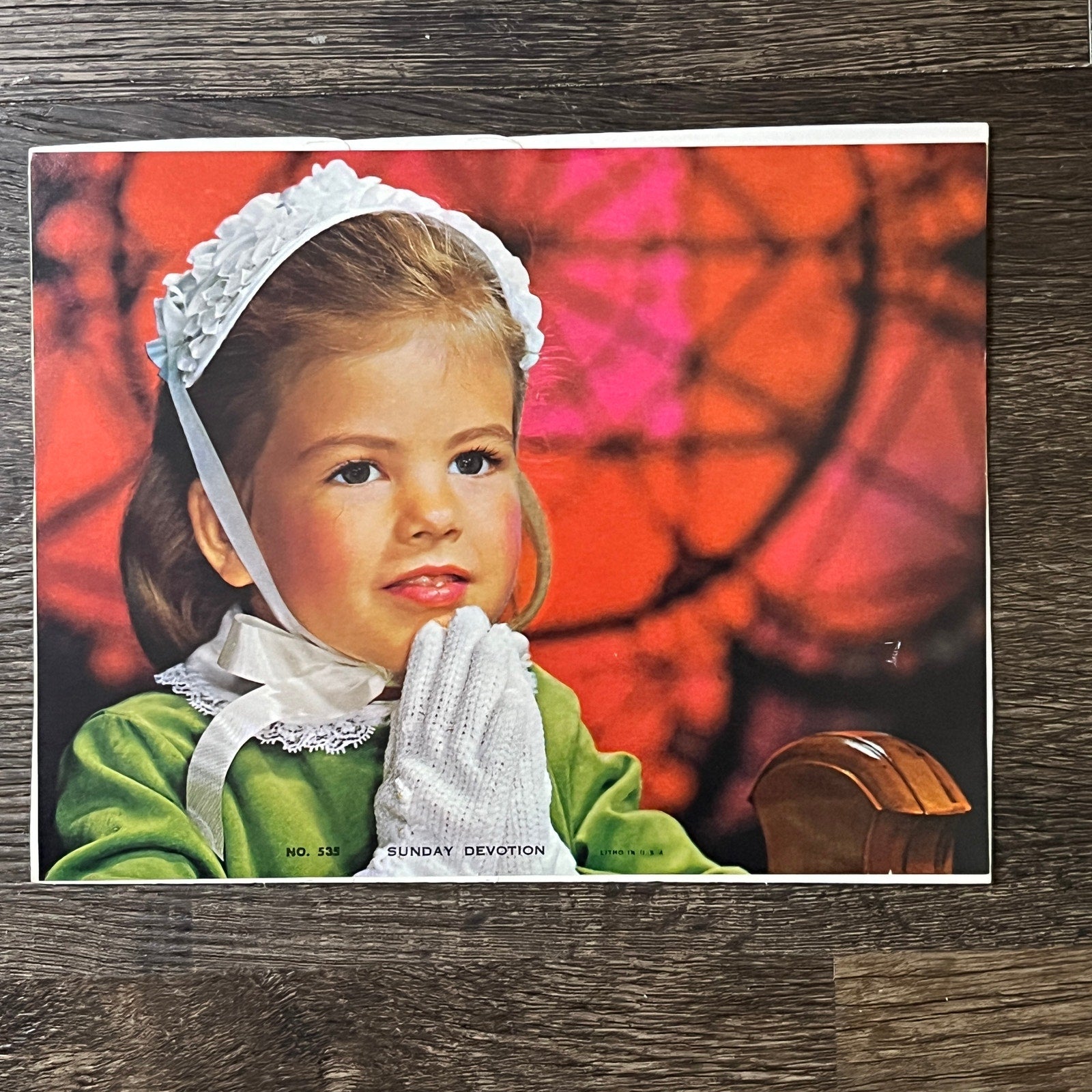 Retro Kitsch Sunday Devotion Little Girl in Bonnet & Gloves Praying 6x8 Print V2