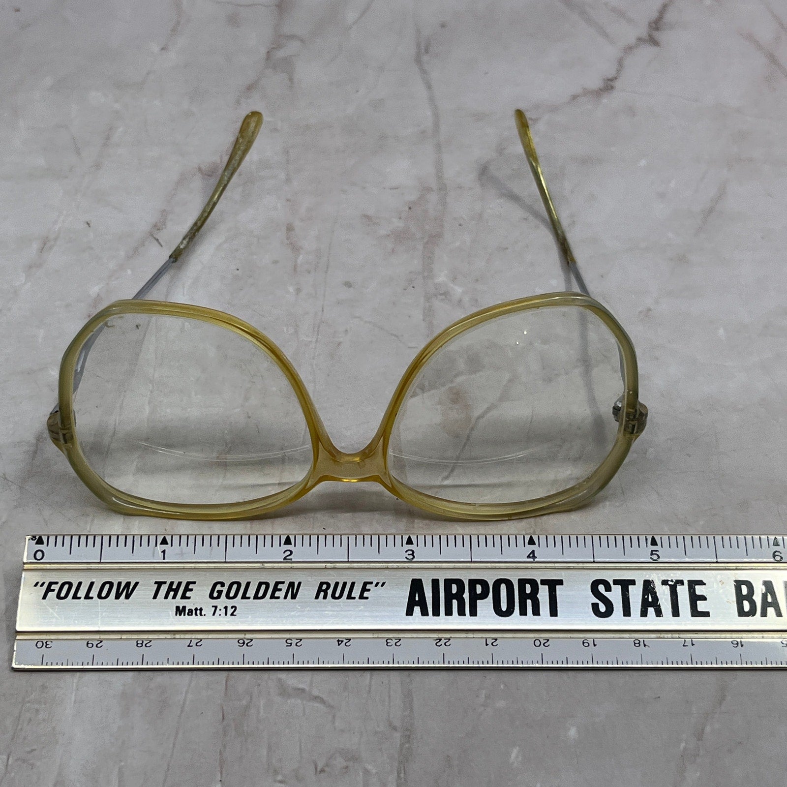 FRAMES ONLY, NO LENSES. Please see pictures for measurements. These have prescription lenses, and you will need to replace them in order to use the glasses, these are being sold as FRAMES ONLY. They have various wear and tear from use, and could use a good cleaning - reflected in the price. See pics for condition.