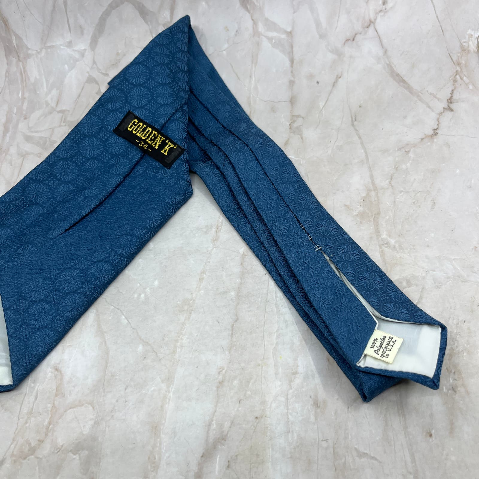 Retro Men's Golden K 34 Polyester Blue Embossed Necktie Tie TG9-T1