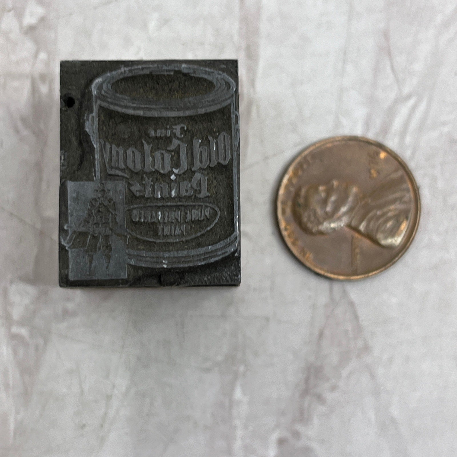Retro Old Colony Paints Logo Vintage Letterpress Printers Block Plate SF5