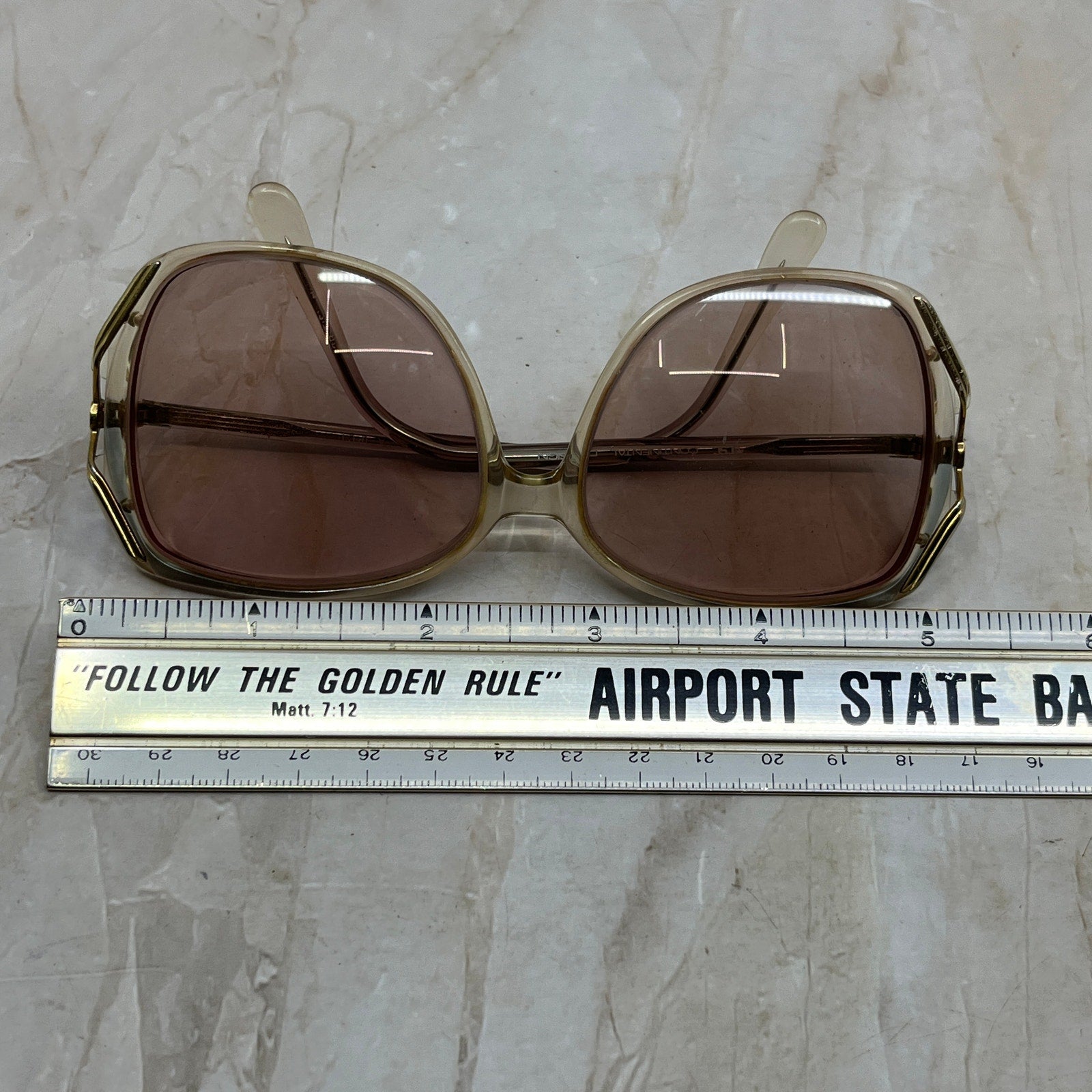 These glasses are being sold as FRAMES ONLY, they are prescription glasses and the lenses will need to be changed. Please see pictures for measurements. They have various wear and tear from use, and could use a good cleaning - reflected in the price. See pics for condition.