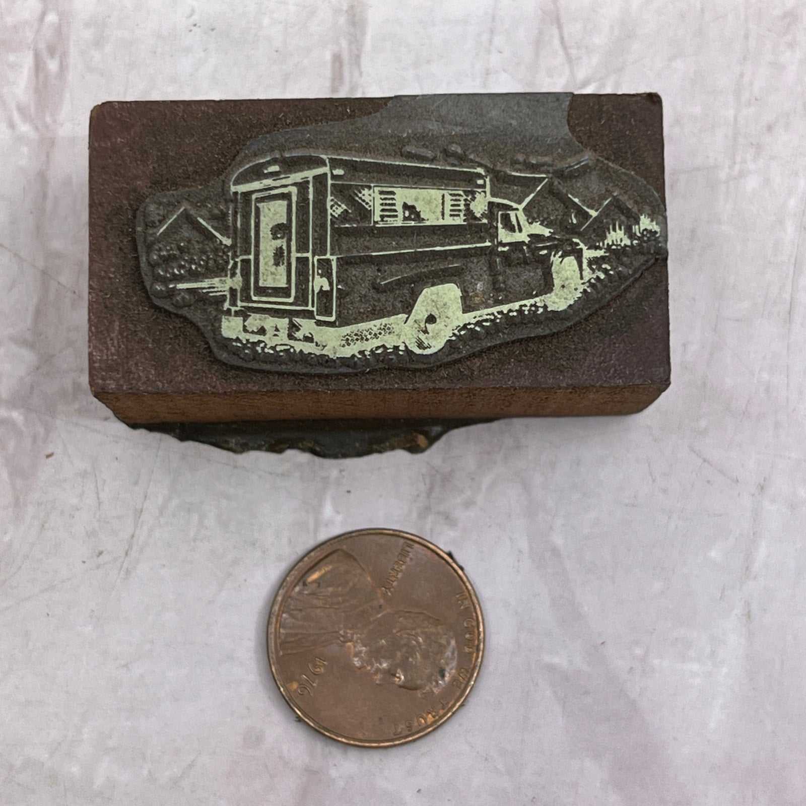 Retro Pickup Truck With Topper in Mountains Letterpress Printers Block Plate SF5