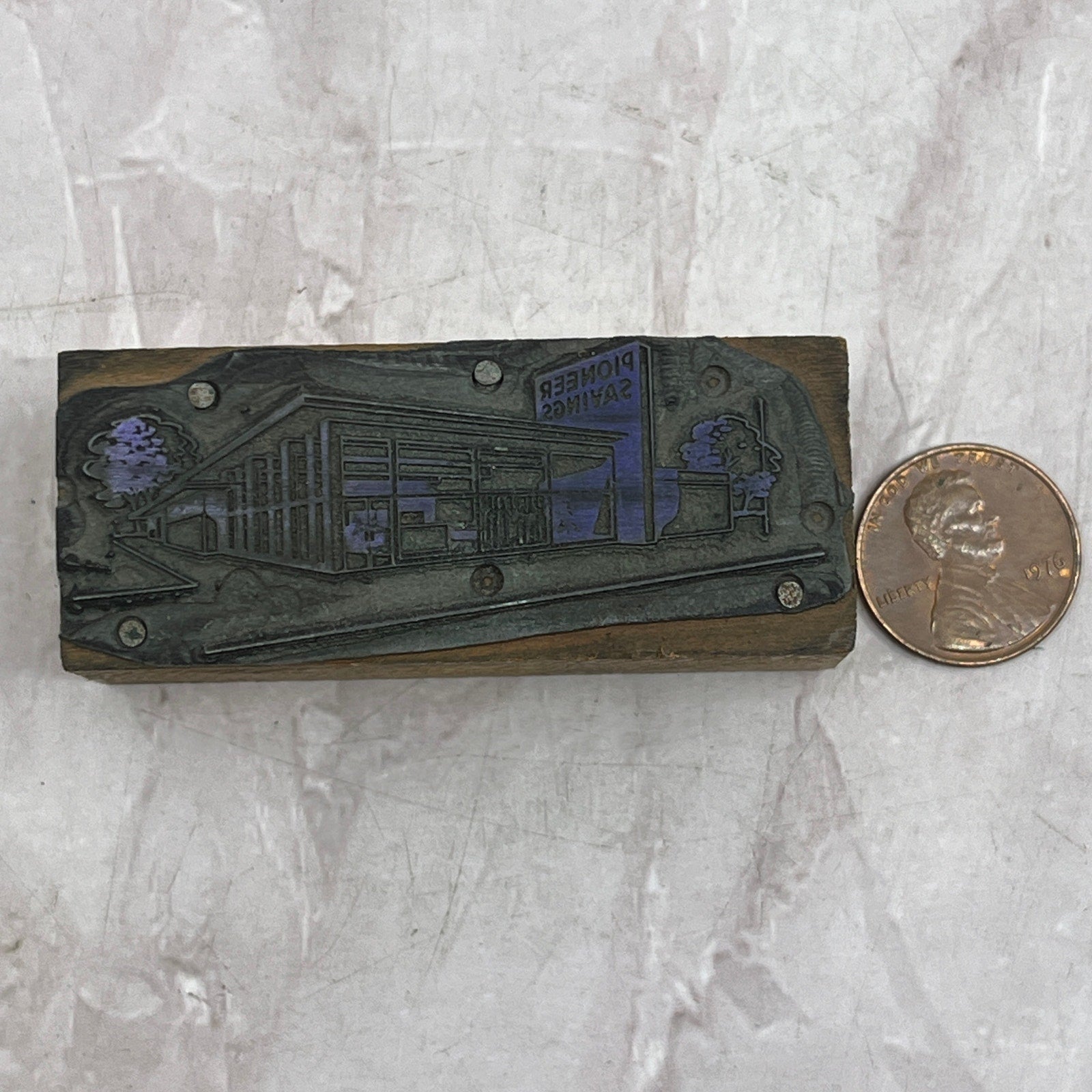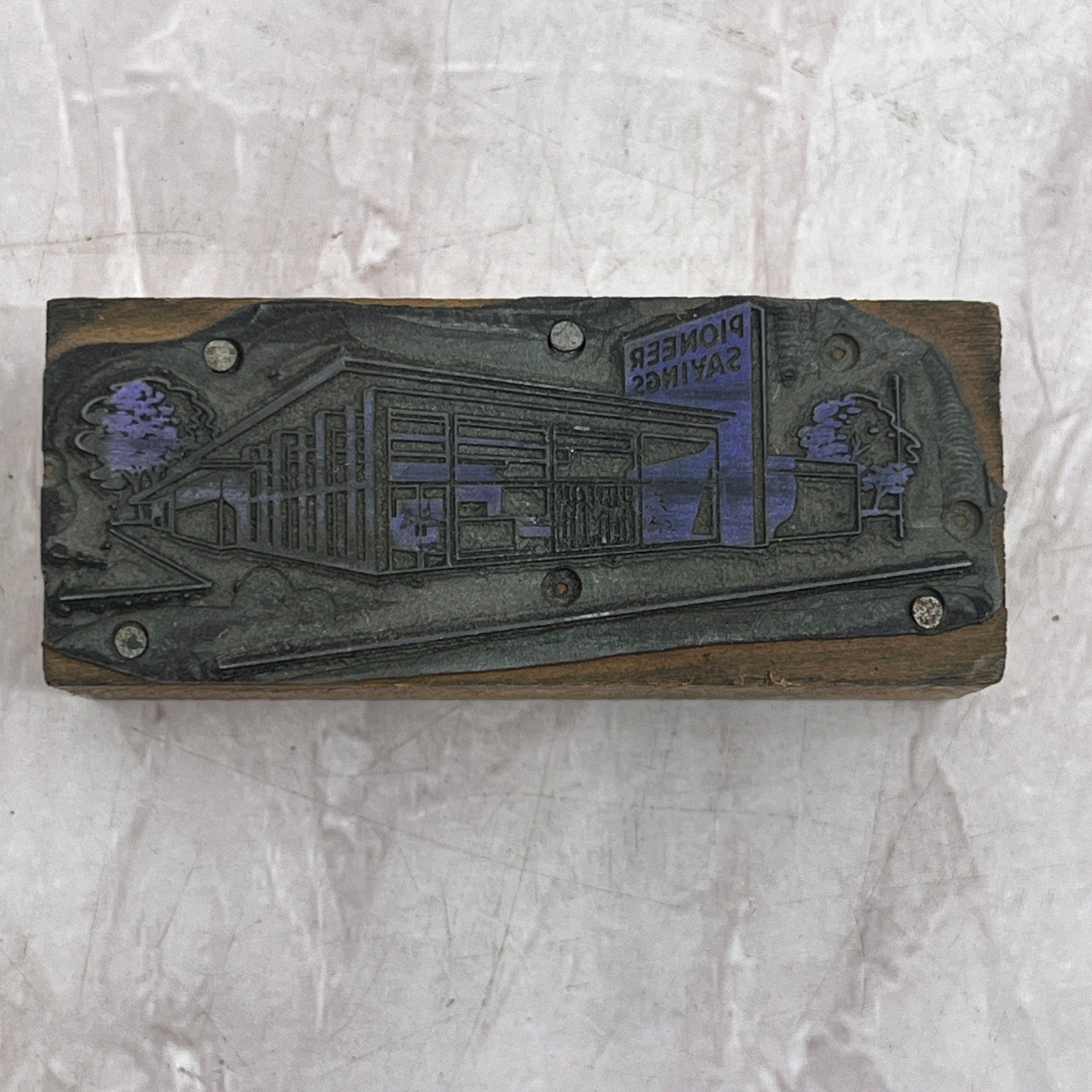 Retro Pioneer Savings Building Vintage Letterpress Printers Block Plate SF5