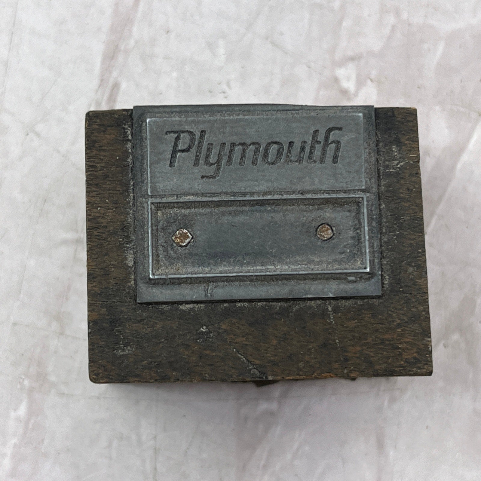 Retro Plymouth Motor Company Vintage Letterpress Printers Block Plate SF5