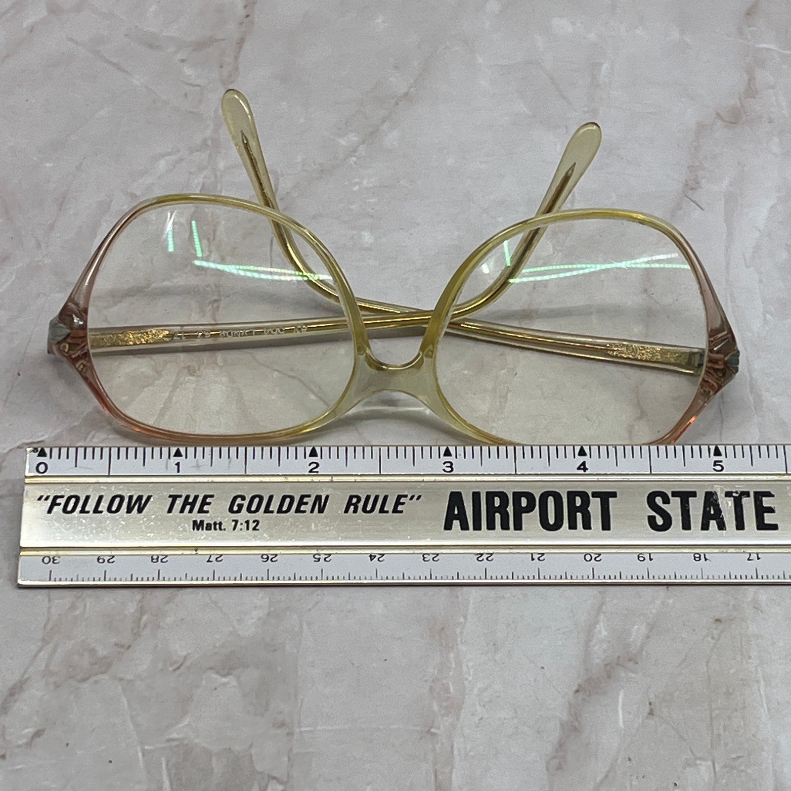 FRAMES ONLY, NO LENSES. Please see pictures for measurements. These have prescription lenses, and you will need to replace them in order to use the glasses, these are being sold as FRAMES ONLY. They have various wear and tear from use, and could use a good cleaning - reflected in the price. See pics for condition.