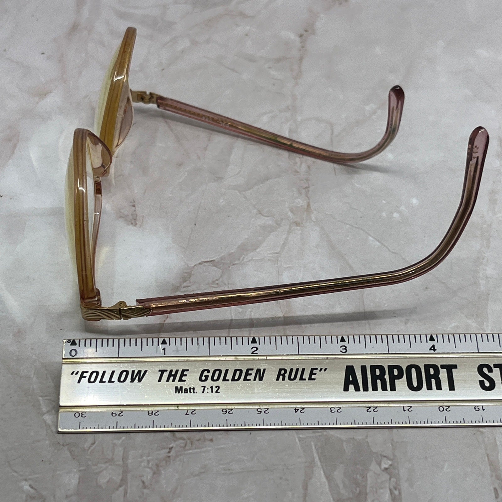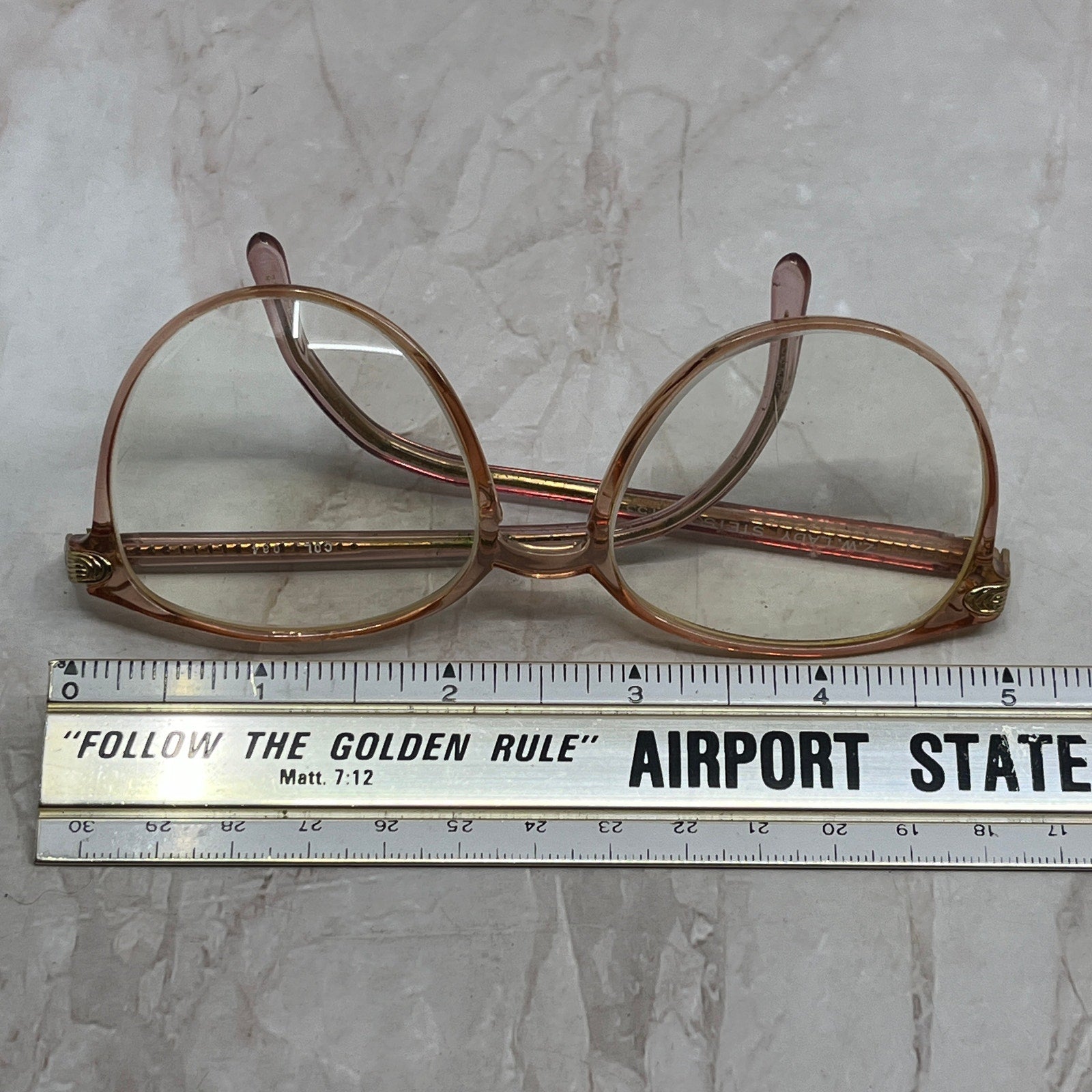 FRAMES ONLY, NO LENSES. Please see pictures for measurements. These have prescription lenses, and you will need to replace them in order to use the glasses, these are being sold as FRAMES ONLY. They have various wear and tear from use, and could use a good cleaning - reflected in the price. See pics for condition.