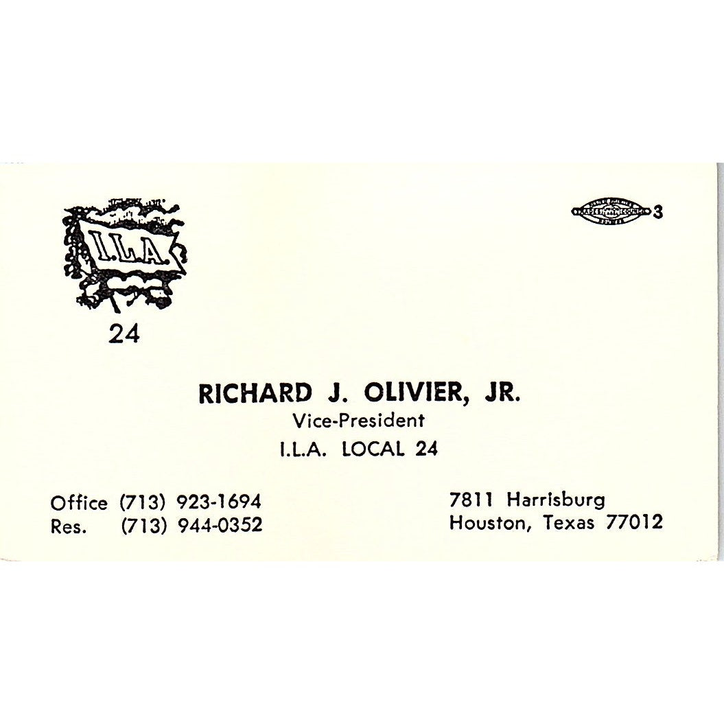 Richard J Olivier Jr I.L.A. Local 24 Houston Vintage Business Card SC9-B3