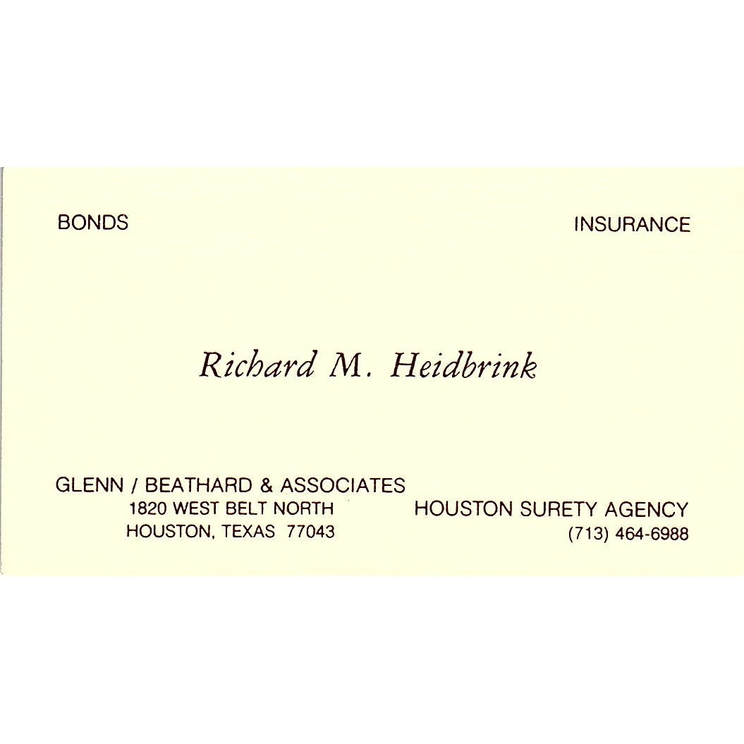 Richard M Heidbrink Glenn Beathard & Assoc Houston Vintage Business Card SD9-B6