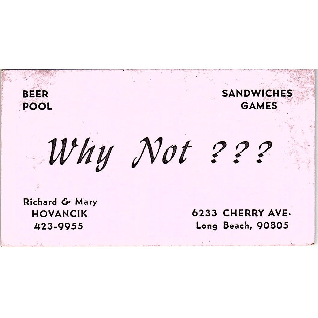 Richard & Mary Hovancik Why Not? Long Beach CA Vintage Business Card SD9-B5