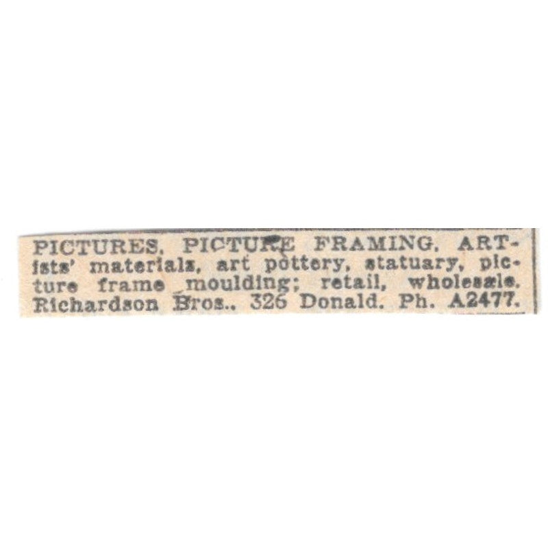 Richardson Bros Pictures, Picture Framing 326 Donald Winnipeg 1920 Ad AG2-S11