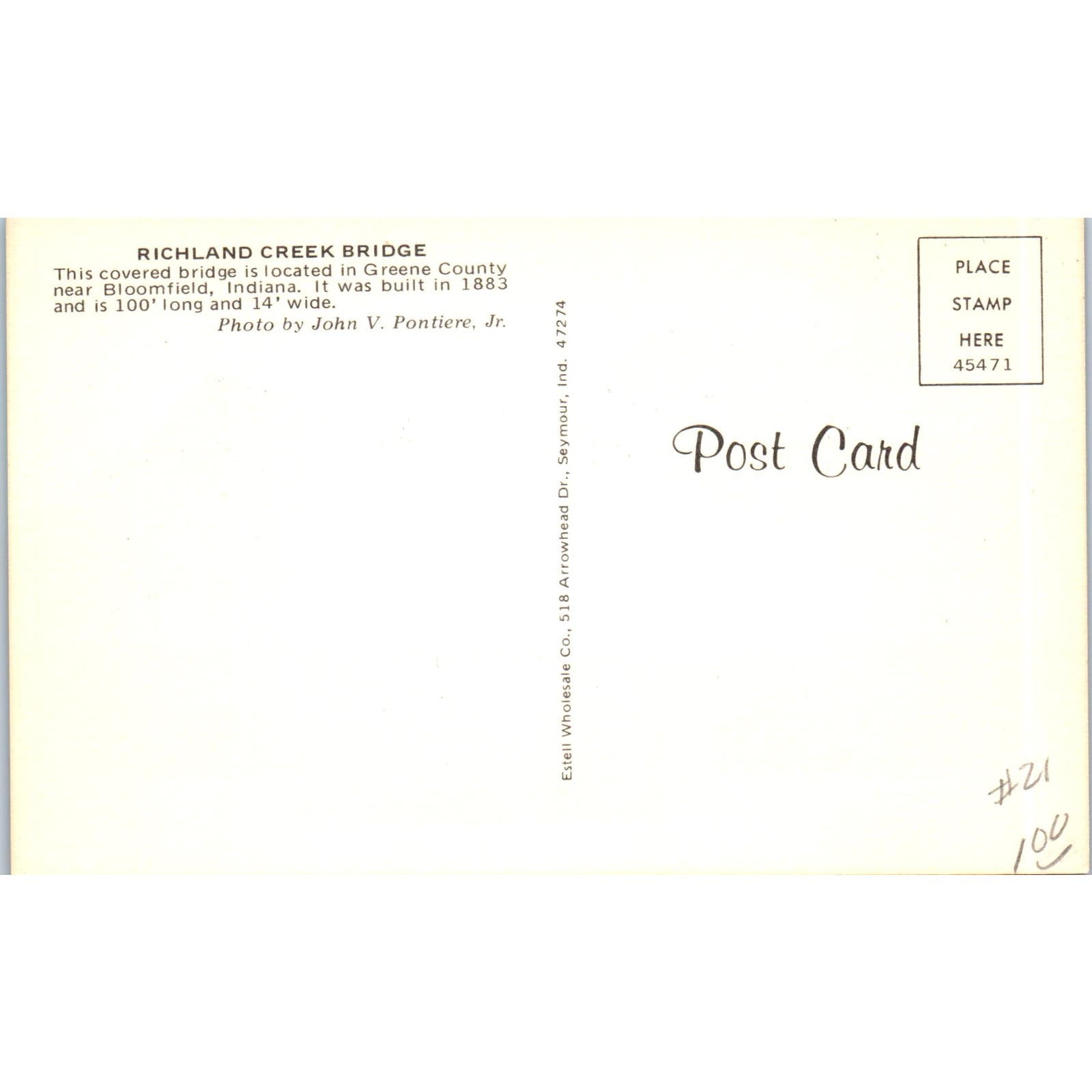 Richland Creek Bridge Bloomfield IN Vintage Covered Bridge Postcard PC16