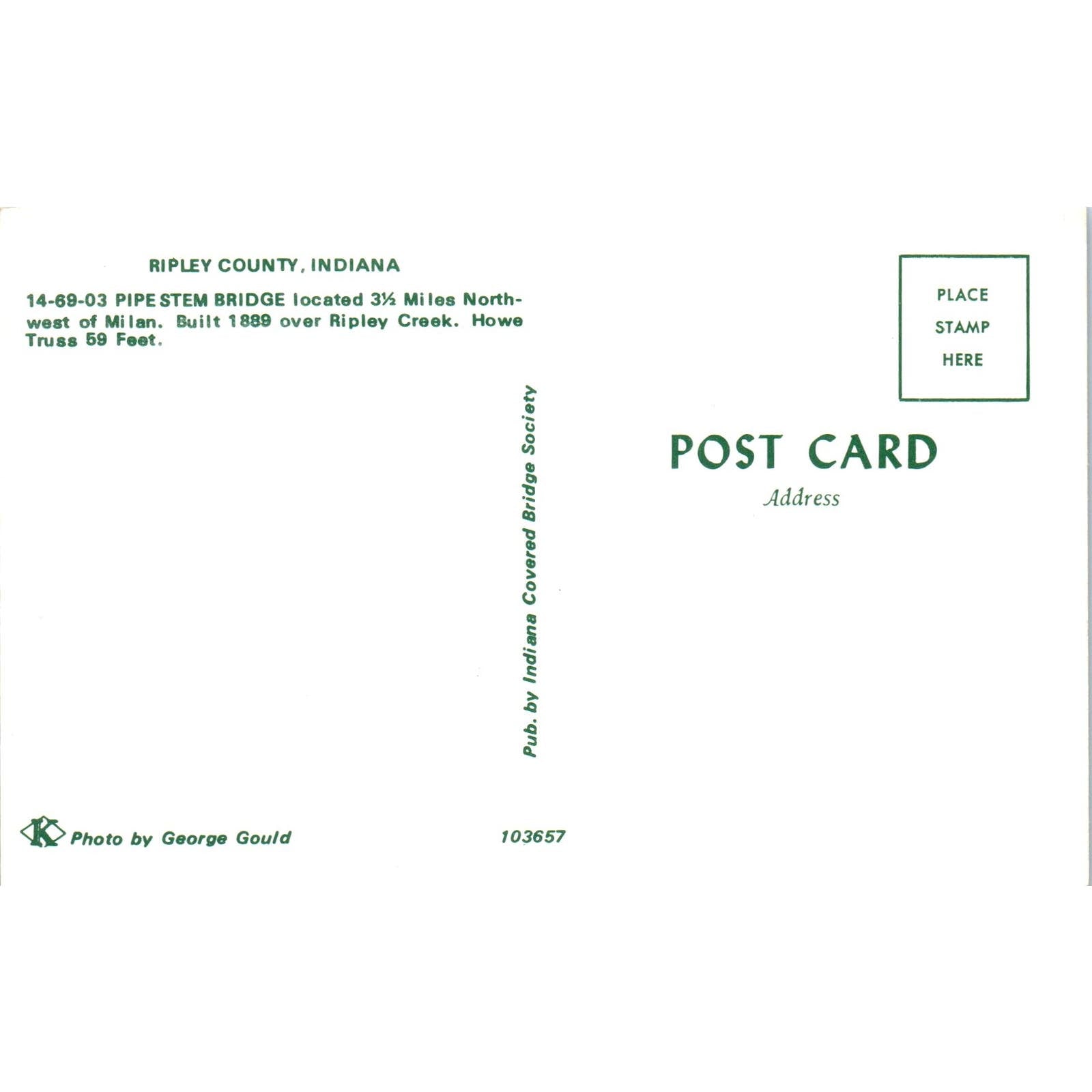 Ripley County Milan Indiana Pipestem Covered Bridge Postcard PB11
