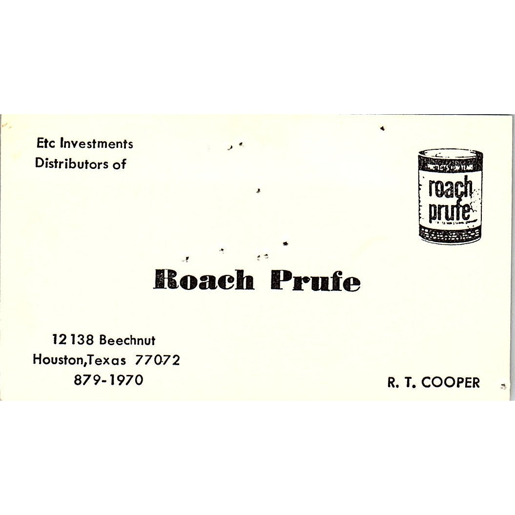 Roach Prufe R.T. Cooper Houston Texas Vintage Business Card SB4-B1