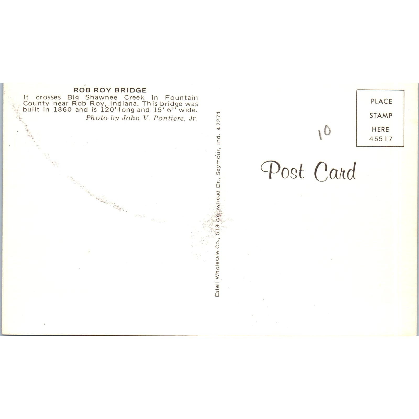 Rob Roy Bridge Big Shawnee Creek IN Vintage Covered Bridge Postcard PC13