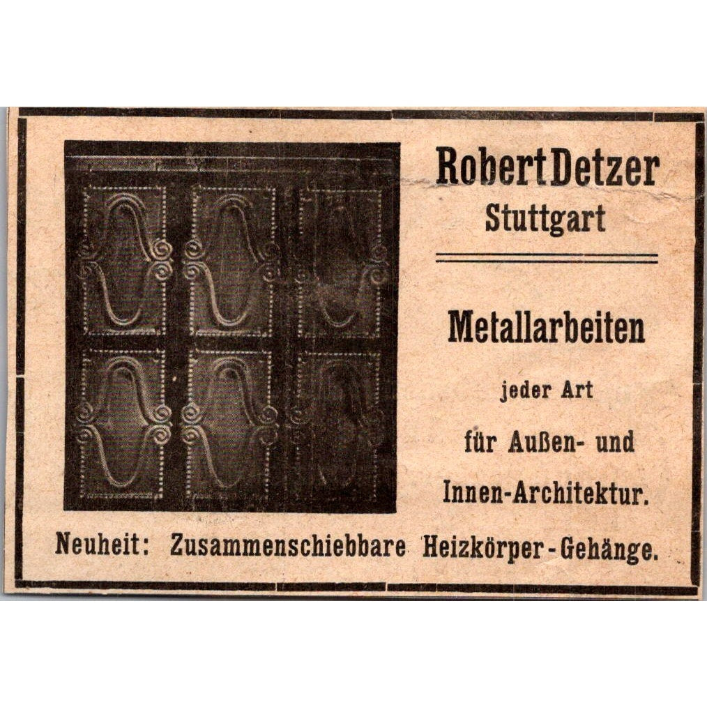 Robert Detzer Stuttgart Metallarbeiten Architektur 1906 German Ad AH9-H1