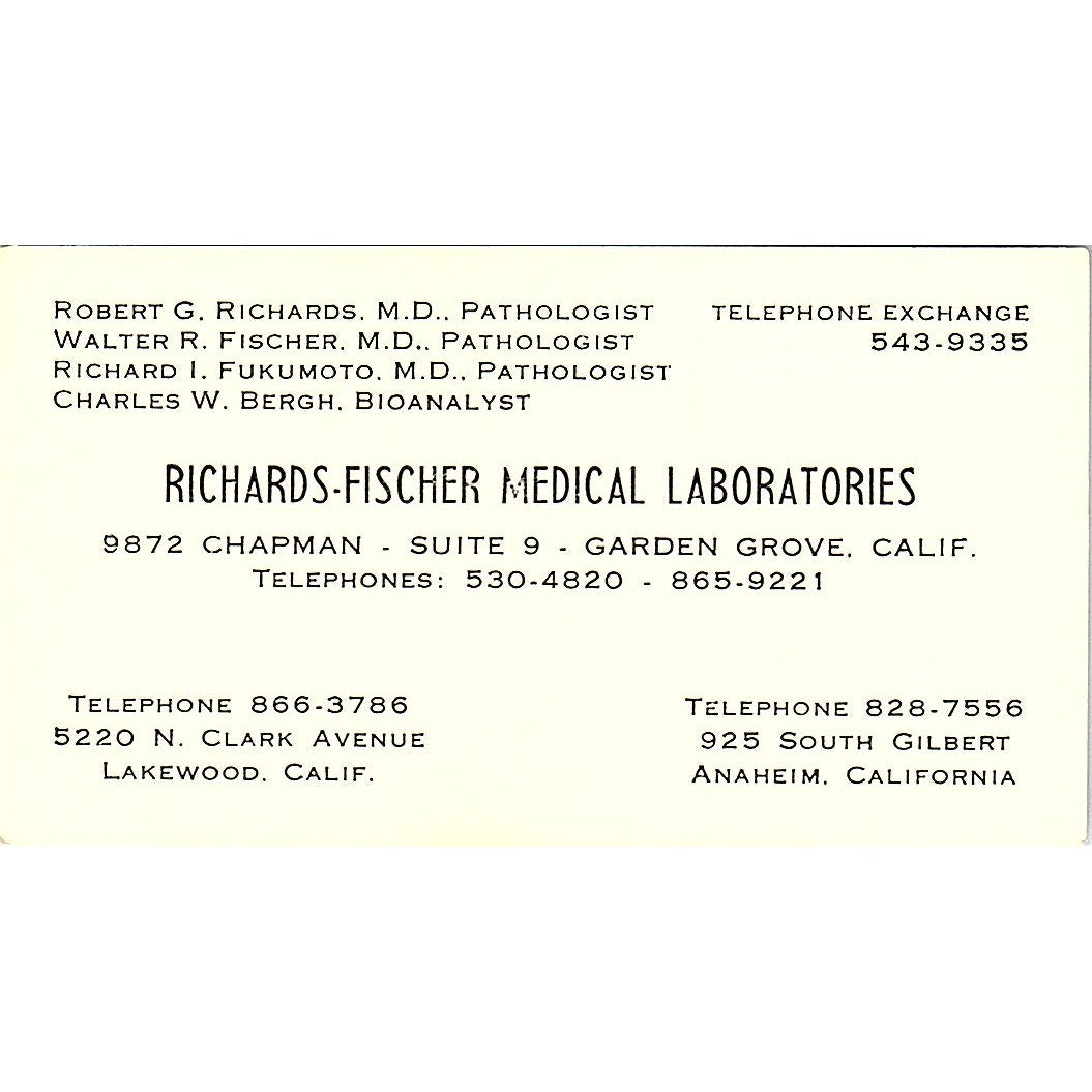 Robert G Richards-Fischer Medical Laboratories Anaheim Vintage Business Card SD9-B10