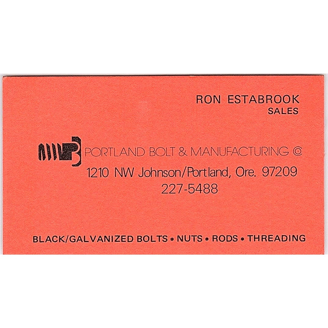 Ron Estabrook Portland Bold & Manufacturing Portland OR Vtg Business Card SD9-B4