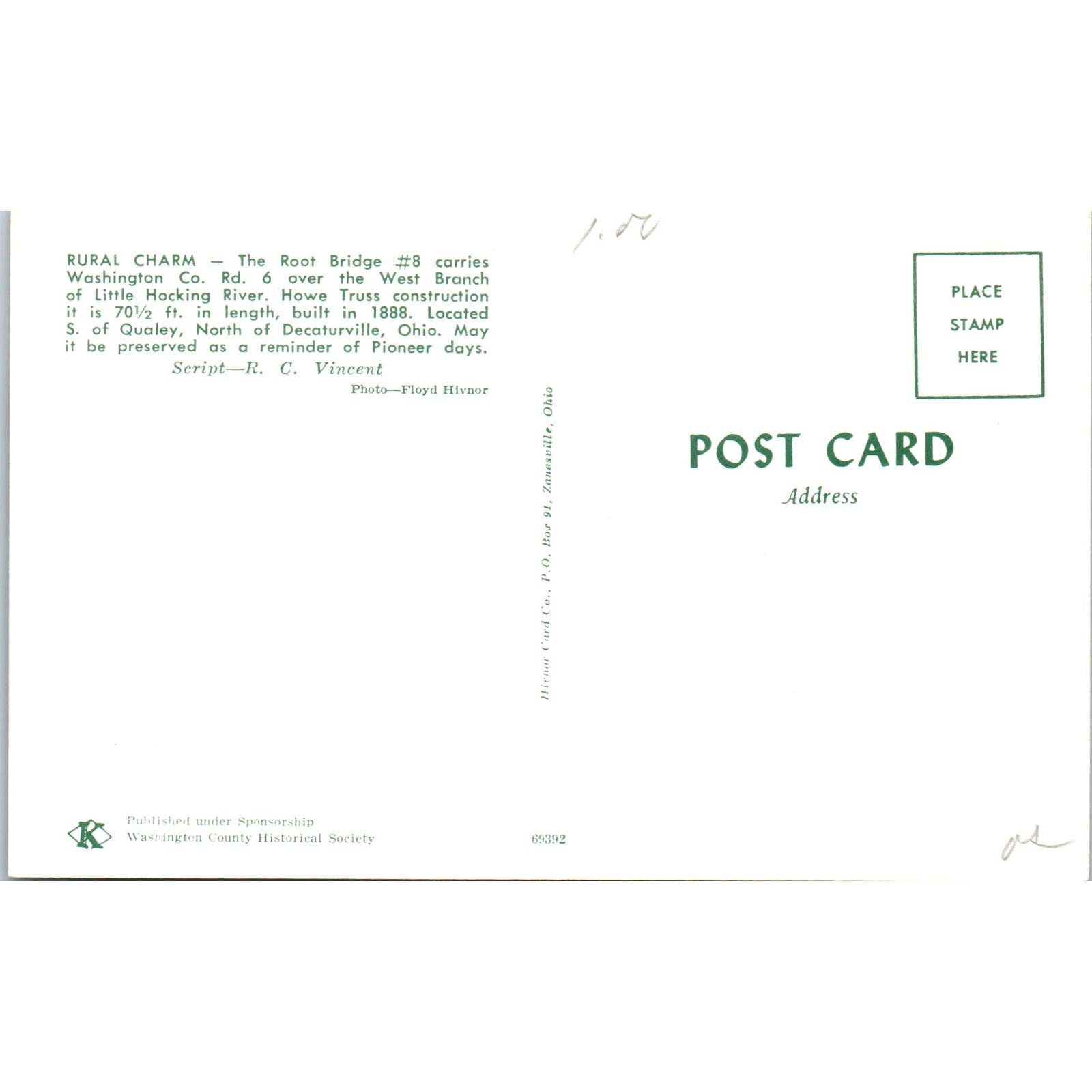 Root Bridge #8 Little Hocking River Decaturville OH Covered Bridge Postcard PC5