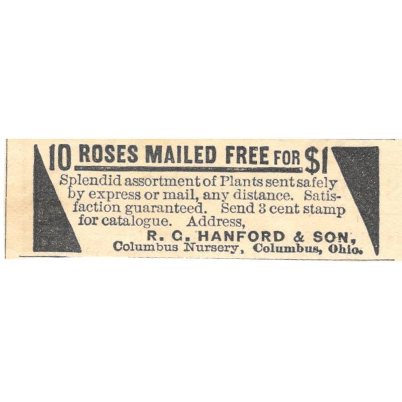 Roses Mailed R.C. Hanford & Son Columbus OH - Ad 1878 Original TJ7-L2-4