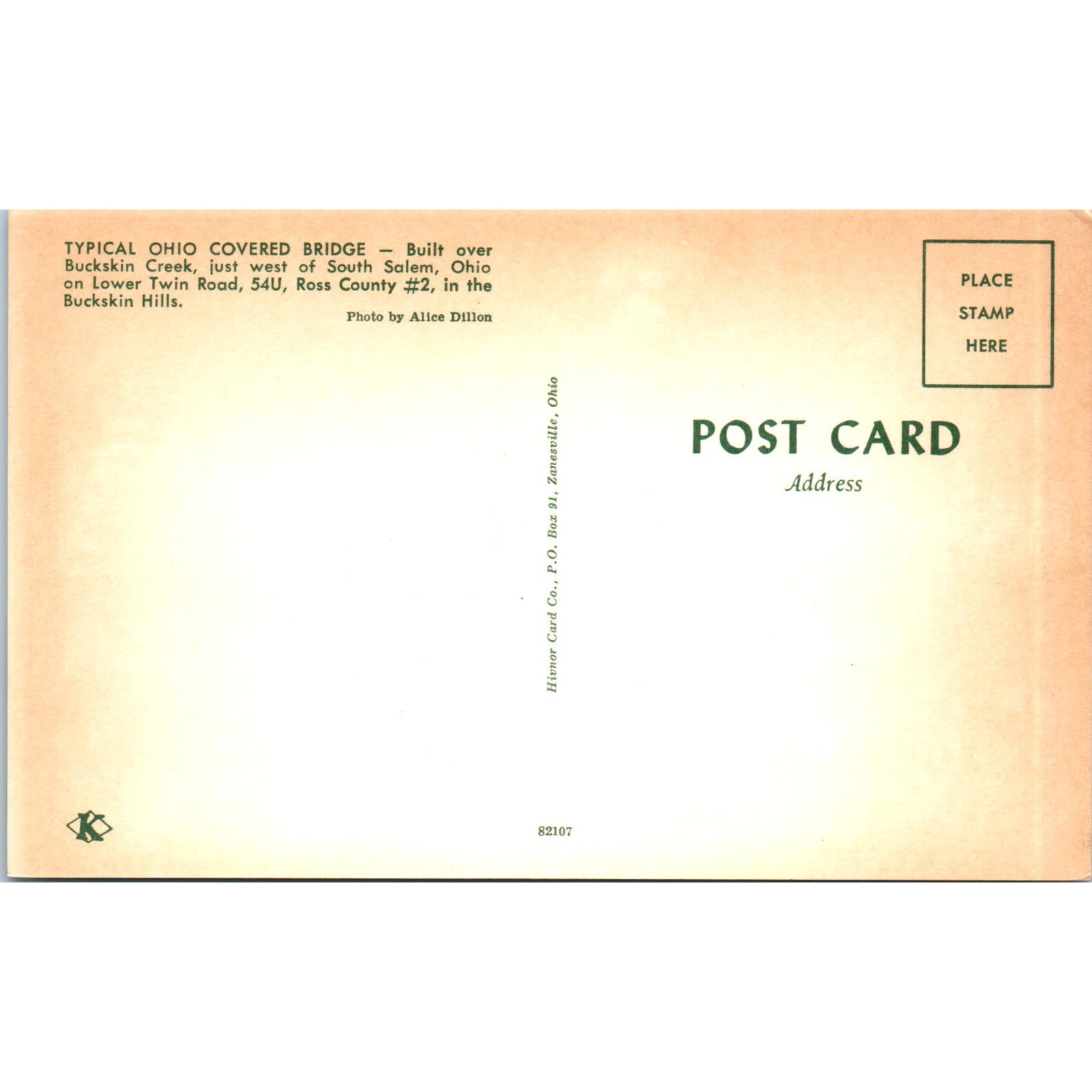 Ross County 2 Buckskin Creek Salem OH Vintage Covered Bridge Postcard PC13