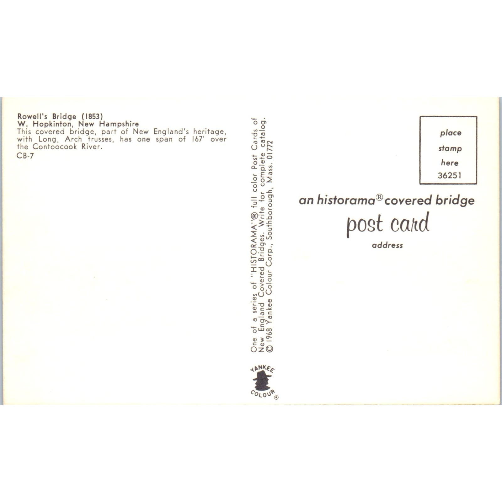 Rowell's Bridge W. Hopkinton NH Vintage Covered Bridge Postcard PD6