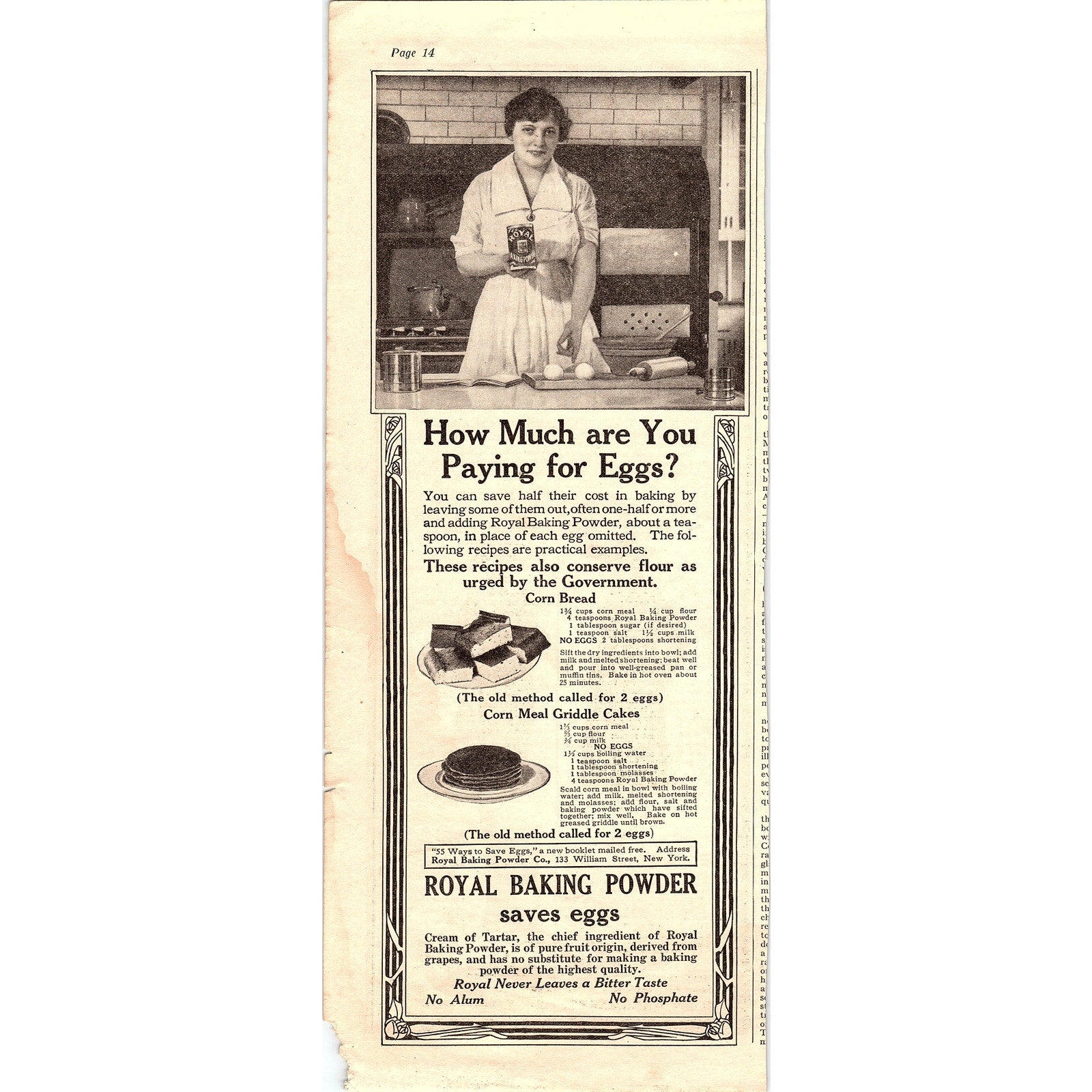 Royal Baking Powder Antique Ad Cornbread, Griddle Cake Recipes 5x13 V4
